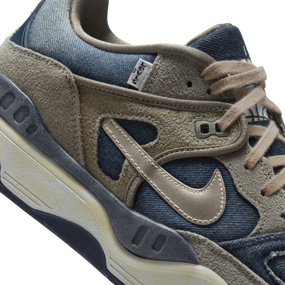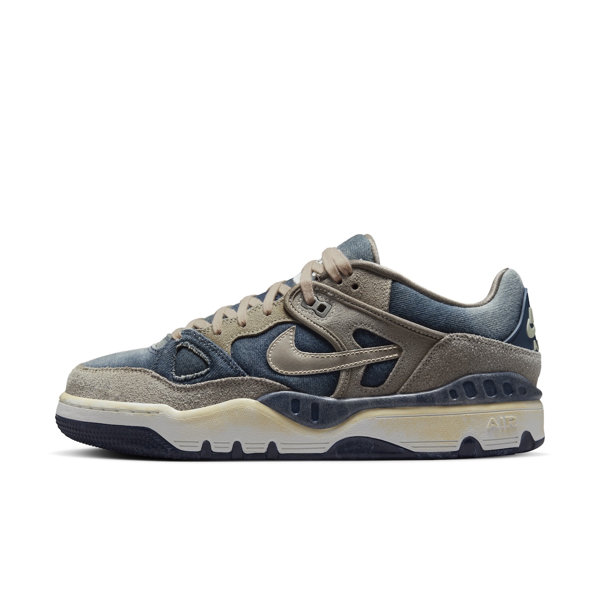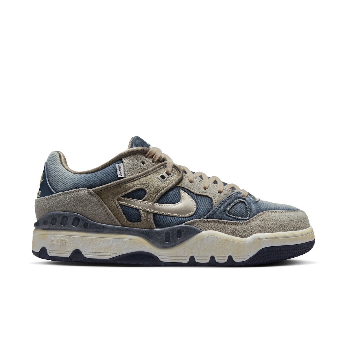専用のオリーブグレーのカラーウエイを持つ同モデルは、「リーバイス」とNIGO®両者のデザイン哲学を象徴する“使いこまれた美しさ”を表現。アッパーは色落ちしたデニムとテクスチャーのあるスエード素材を組み合わせ、独特な質感と立体感を生み出した。右足に入ったアイコニックなリーバイスのレッドタブと、歩くたびに光を映し出すメタリックのスウッシュがモデルを象徴するディテールとなり、EVA素材のミッドソールにはあえて黄ばみ加工を施し、リアルな履き込まれ感を演出した。ラバー製のアウトソールはナイキならではの優れたパフォーマンスと耐久性を発揮する。