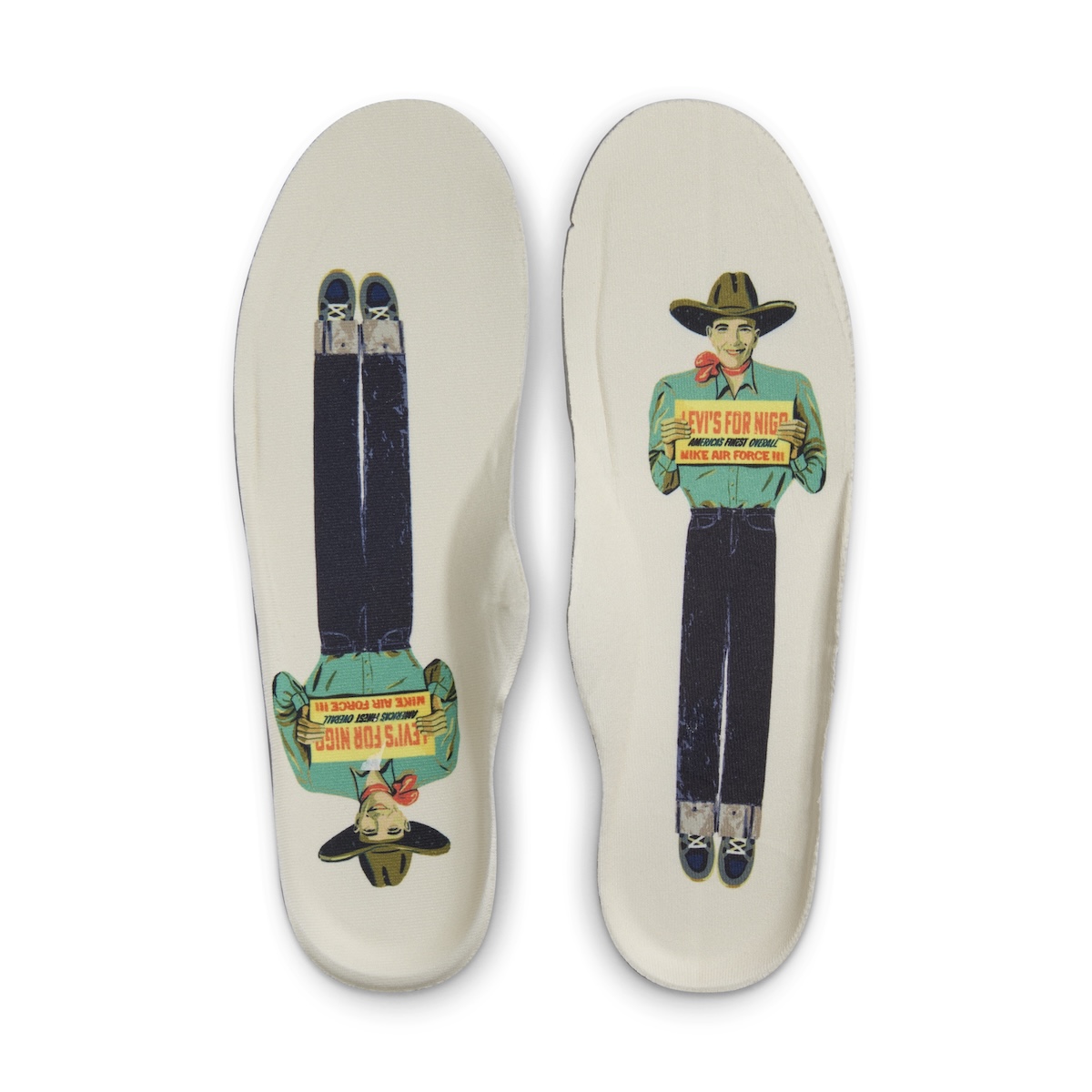 レオ・ガンボア(Leo Gamboa)「リーバイス」コラボレーション担当バイスプレジデントは「“エアフォース 3”は実に独特なシルエットを持っている。そこにリーバイスの視点とNIGO®のビンテージデニムへの知見を加えて再構築することで、唯一無二のスニーカーが誕生した。このモデルでは、アーカイブの中に未来への可能性を見出すNIGO®の才能と、フットウエアを知り尽くしたナイキの専門性がブレンドされている。ヘリテージを称えながら、未来に向けた新しいクリエイティビティも表現している」とコメントしている。