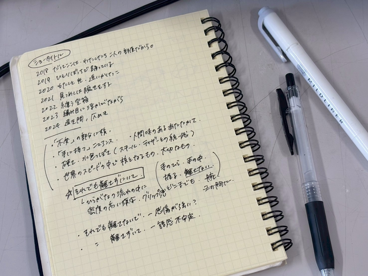次回は、ショーの世界観を映像や写真に置き換えていくルックブック撮影を取り上げます。“撮影”を通して、どのように「変わりゆくなかで、変わらないもの」を写し出そうとしたのか。構想段階から撮影当日までの準備、そして現場で生まれた瞬間の数々を振り返ります。