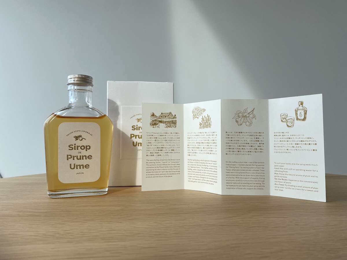 酷暑の8月上旬、ケリングから届いた小瓶の梅シロップ。そのさわやかな味わいと、添えられていたリーフレットの丁寧なつくりが印象的だった。そこには、表参道のケリングビル屋上にあった梅の木と、伐採予定だった梅の木を買い取り東京近郊の「ケリングファーム」に移植して育てた梅から作られたことが記されていた。さらに、ケリングの社名がブルターニュ語で「家」や「暖炉」を意味する“ker”に由来することや、グループ理念「care」に込められた想い――人、パートナー、製品、地球への配慮――が丁寧に説明されていた。