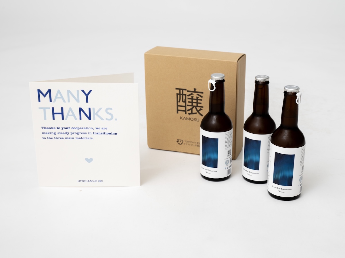 このクラフトビールは、匝瑳で開催されたフェスティバルで出合った地元のブルワリーと約1年半かけて共同開発された。味のタイプは4~5種類を試飲し、「自分が一番おいしいと思った味に仕上げた」と平井社長。同じく匝瑳に5カ所のソーラープラントを持つロンハーマン(Ron Herman)や他の畑で育った大麦も活用した。ロンハーマンでは、クラフトビールをものづくりに関わる取引先を中心にサステナブル素材への切り替えの進捗報告と協力への感謝の思いを込めて贈っている。