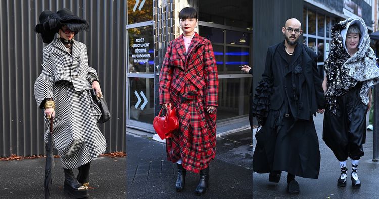 「コム デ ギャルソン(COMME DES GARCONS)」は10月4日、2026年春夏コレクションをパリで発表した。会場周辺に集まった“「ギャルソン」ラバー“の多くが着用していたのは、”smaller is stronger(小さきものほど、強いもの)”をテーマにした25-26年秋冬コレクションのピース。ピンストライプやチェック、グレーのフランネルといったクラシックなメンズスーツ地を、彫刻のように成形した異形のセットアップが目立った。その立体的なフォルムは、遠目にも「コム デ ギャルソン」とわかる存在感だ。同日朝には、「ジュンヤ ワタナベ(JUNYA WATANABE)」も同じ会場でショーを開催。バイカージャケットを再構築したデザインをまとう来場者が目を引いた。