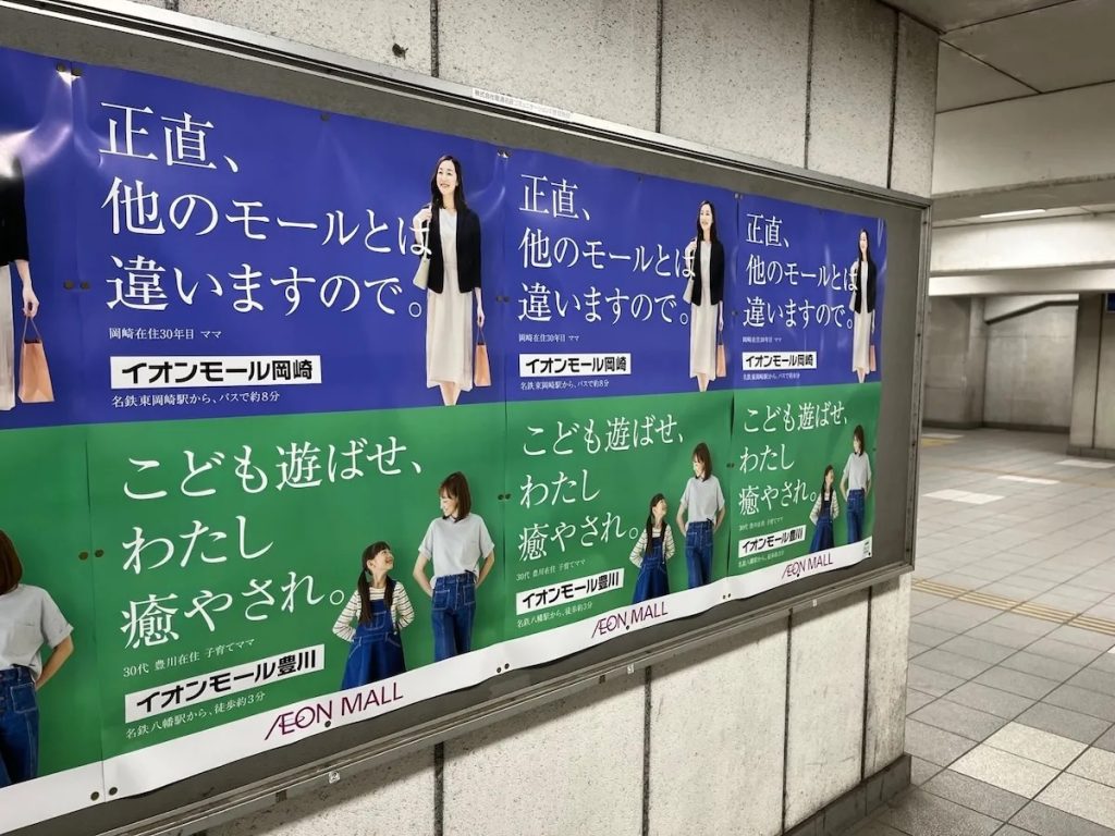 イオンモール岡崎の広告は、女性のビジュアルに大きな活字で下記のように綴られていました。