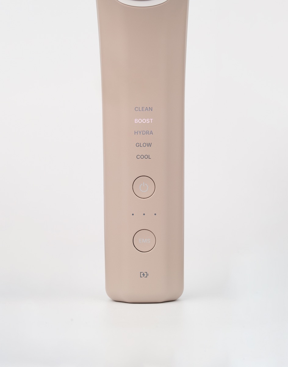 製品は肌をなめらかに整えるディープクレンジング、ハリ・引き締めケアのブースト、弾力肌に仕上げるハイドラ、集中潤いケアのグロー、肌を落ち着かせるクールの5つのモードと、高周波、電気パルス、微電流(EMS)、イオン、赤色と青色のLED、温熱、冷却の7つの機能を搭載。忙しい日々の中でも手軽に使用できること、継続しやすいことに焦点を当て、モード変更は自動で行うようにした。5つのモード全てを使用したナイトモードは約12分、ハイドラ、グロー、クールのデイリーモードは約5分でケアが終わるよう設計。また、専用化粧品を推奨する美顔器もあるが、ターゲット層となる30〜40代は愛用のスキンケア製品がある人が多いことから、普段使用している化粧水や美容液、乳液をそのまま使えるようにした。カラーはベージュとブラックの2色で、細かなパーツにも当てやすい楕円形のヘッドや握りやすい本体など、デザインにもこだわっている。