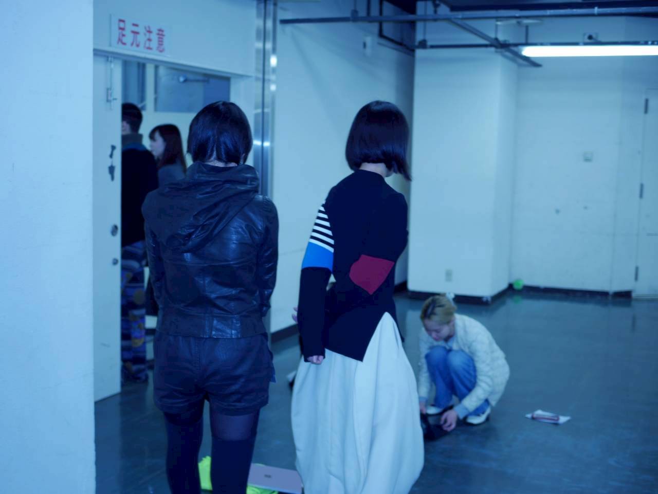 ロールモデルとして採用したのが、2020年頃の弊会のショー。当時のショーからは、語らずとも1着1着に思考が恐縮されていることが感じ取れるためです。ショーの特徴を、硬さ、冷たさ、乾き、実験的、青み、幾何学、直線といったキーワードで解釈。これらのキーワードと、今年度のコンセプトから発想した「資本主義社会」「人々の交差」「交通」といった要素を掛け合わせて、音響、照明、導線を組み立てました。