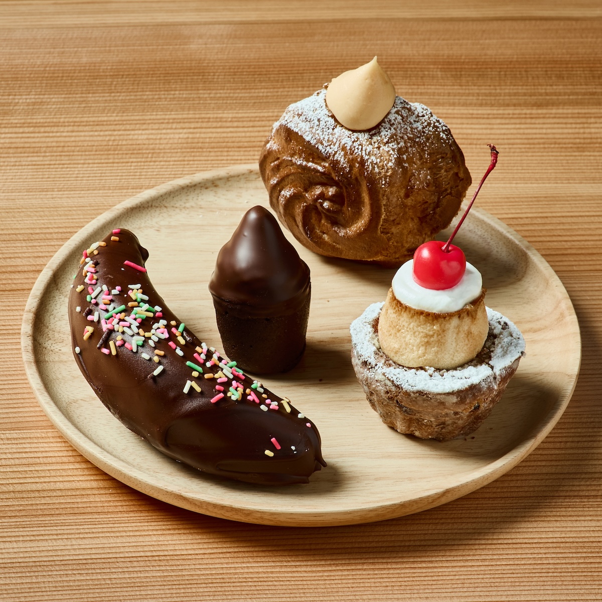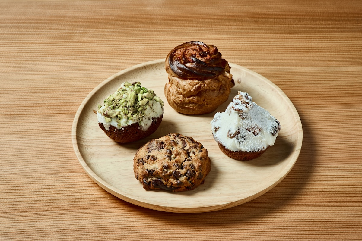 新カフェブランドを立ち上げた経緯について平子良太代表・オーナーシェフは、「福岡の『アマムダコタン 六本松店』では焼き菓子を提供しており、多くのお客さまから支持を得てきた。そんな中『アマムダコタン 表参道店』の隣の物件を確保できたことから、この場所ならではの挑戦を模索していた。立地の強みを生かしつつ、“『アマムダコタン』らしさ”と唯一無二の価値を両立させたいと考えた結果、東京では初となる本格的な焼き菓子専門店として展開することにした」と説明する。これまで培ってきたレシピや製法をさらに磨き上げ、素材の良さや平子代表・オーナーシェフの遊び心を詰め込んだ多彩な製品をラインアップする。製品の半分以上が新作だ。また来年から、時間帯ごとに内容が変わる特別なプレートも数量限定で提供する予定。同プレートでは、「アマムダコタン」の味わいを少しずつ複数種類堪能できる。