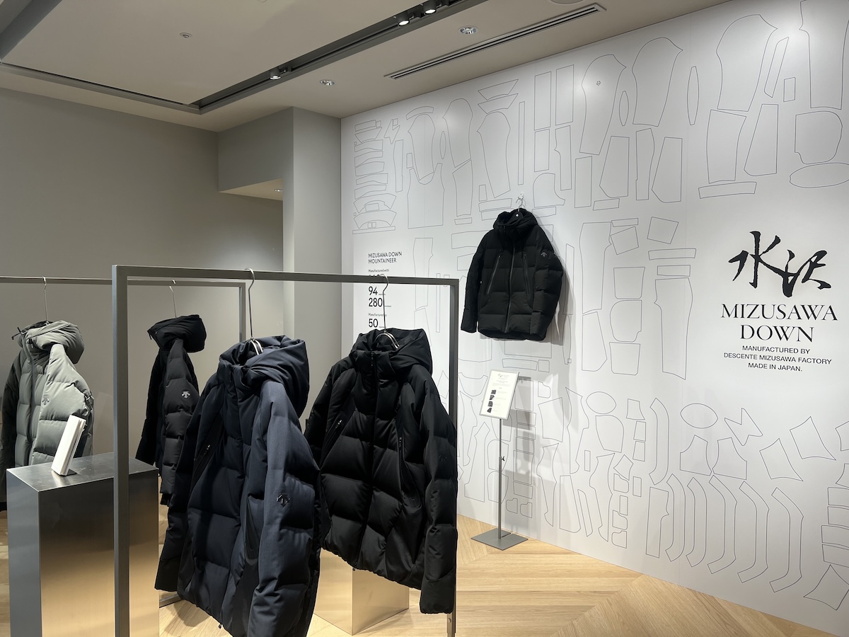 立地は大丸神戸店を中心に「プラダ」や「ルイ・ヴィトン」などラグジュアリーブランドが軒を連ねるショッピングエリアだ。1階にはブランドの原点でもあるスキーウエアやトップレベルの選手も着用するゴルフ向け商品などを展開。18年に本格参入したランニングシューズをはじめフットウェアも関西最大級のアイテム数を取りそろえる。2階は高機能なテックウエアブランド「オルテライン」や同カテゴリーの主力商品である高級ダウンジャケット“水沢ダウン”などを並べる。ゆっくり寛げるソファスペースやイベントスペースがあり、今後スポーツやモノ作りの情報発信を行うイベントなどを実施していく予定だ。