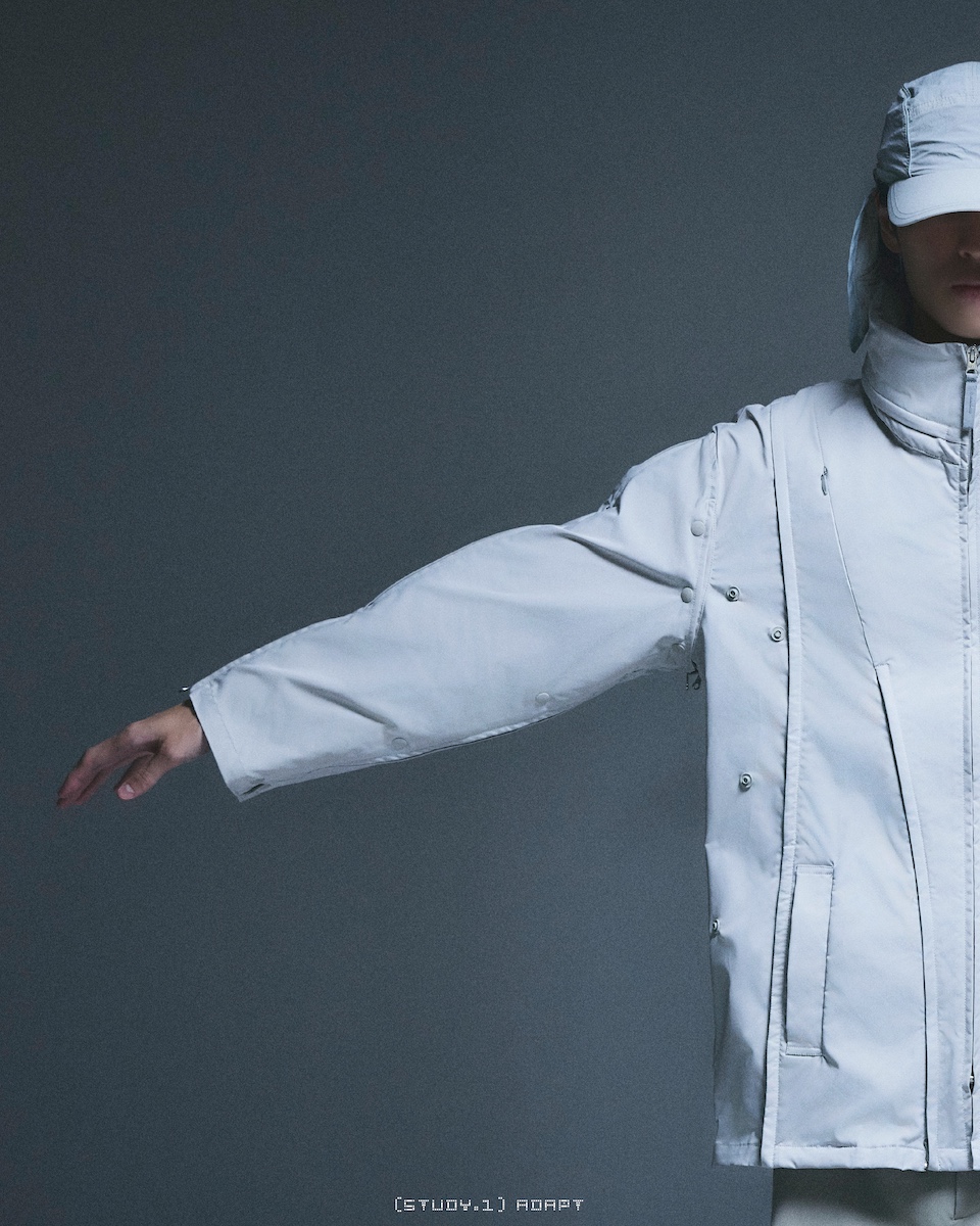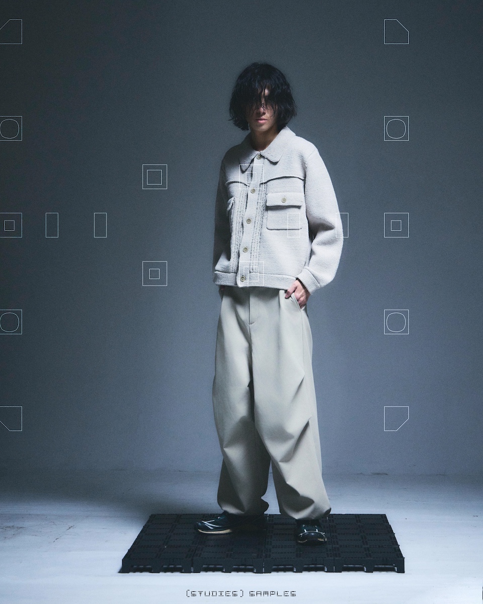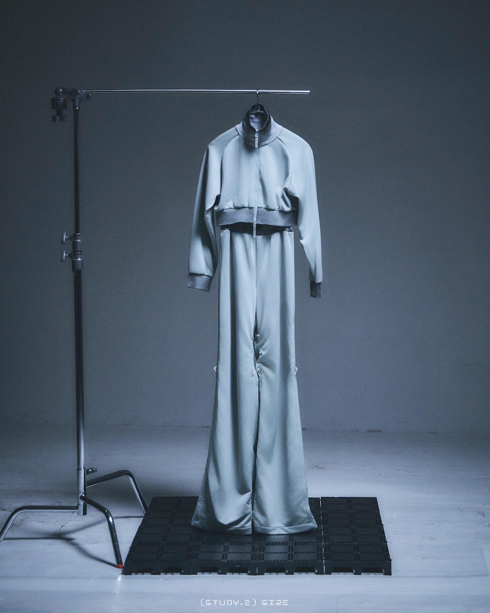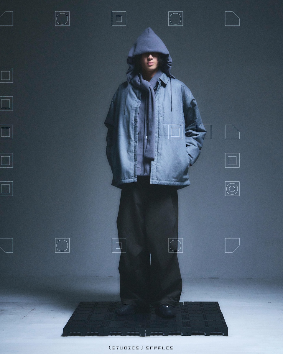 同ブランドは2023年春夏から24年秋冬にかけて“グレーカラー”を軸に、「楽天ファッションウィーク東京(Rakuten Fashion Week TOKYO)」でコレクションを発表。知的労働者を指すホワイトカラーや、肉体労働者を指すブルーカラーといった従来の枠組みに収まらない多様なワークスタイルに向け、快適性を備えたワードローブを提案してきた。今回の展示では、その“グレーカラー”シリーズに焦点を当て、プロトタイプやアーカイブを“アダプト”“サイズ”“カスタム”“ソース”のキーワードの下でさまざまなコンテンツをそろえる。機能性や素材開発、設計思想の変遷を、実物を手に取りながら体感できる内容となっている。