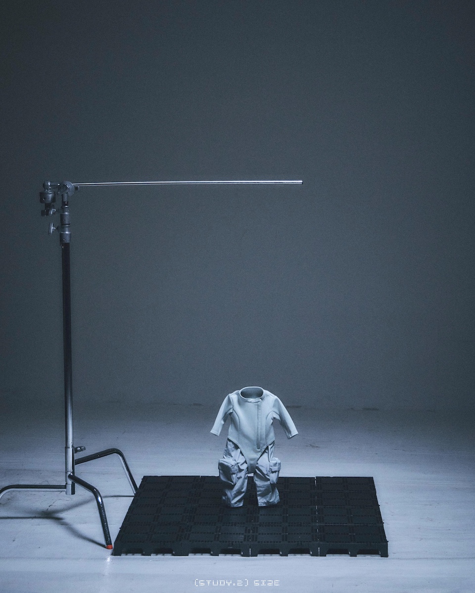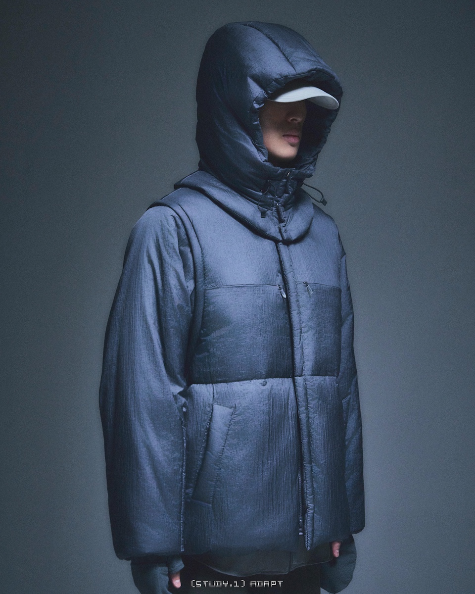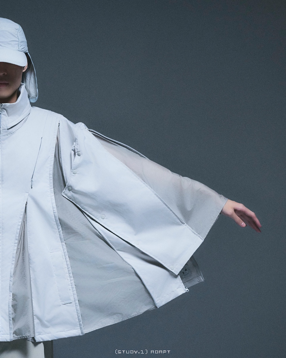 同ブランドは2023年春夏から24年秋冬にかけて“グレーカラー”を軸に、「楽天ファッションウィーク東京(Rakuten Fashion Week TOKYO)」でコレクションを発表。知的労働者を指すホワイトカラーや、肉体労働者を指すブルーカラーといった従来の枠組みに収まらない多様なワークスタイルに向け、快適性を備えたワードローブを提案してきた。今回の展示では、その“グレーカラー”シリーズに焦点を当て、プロトタイプやアーカイブを“アダプト”“サイズ”“カスタム”“ソース”のキーワードの下でさまざまなコンテンツをそろえる。機能性や素材開発、設計思想の変遷を、実物を手に取りながら体感できる内容となっている。