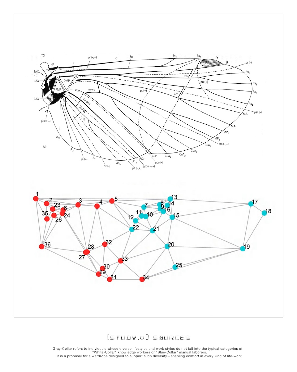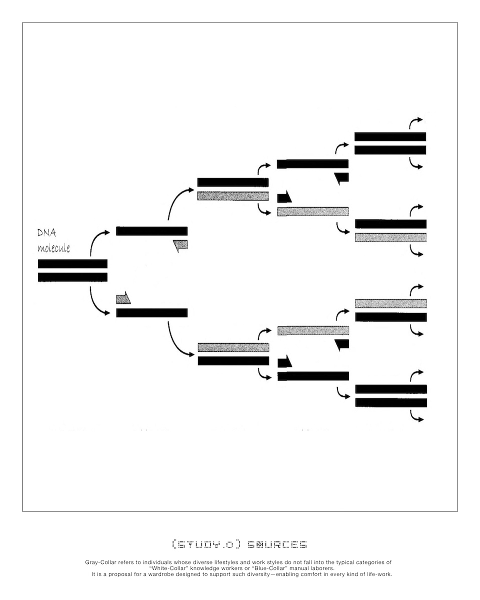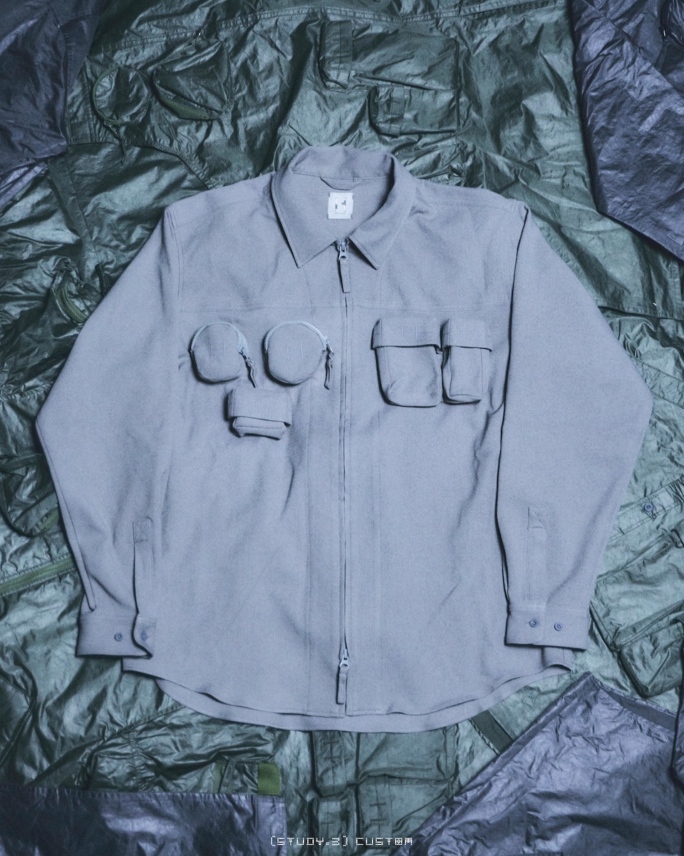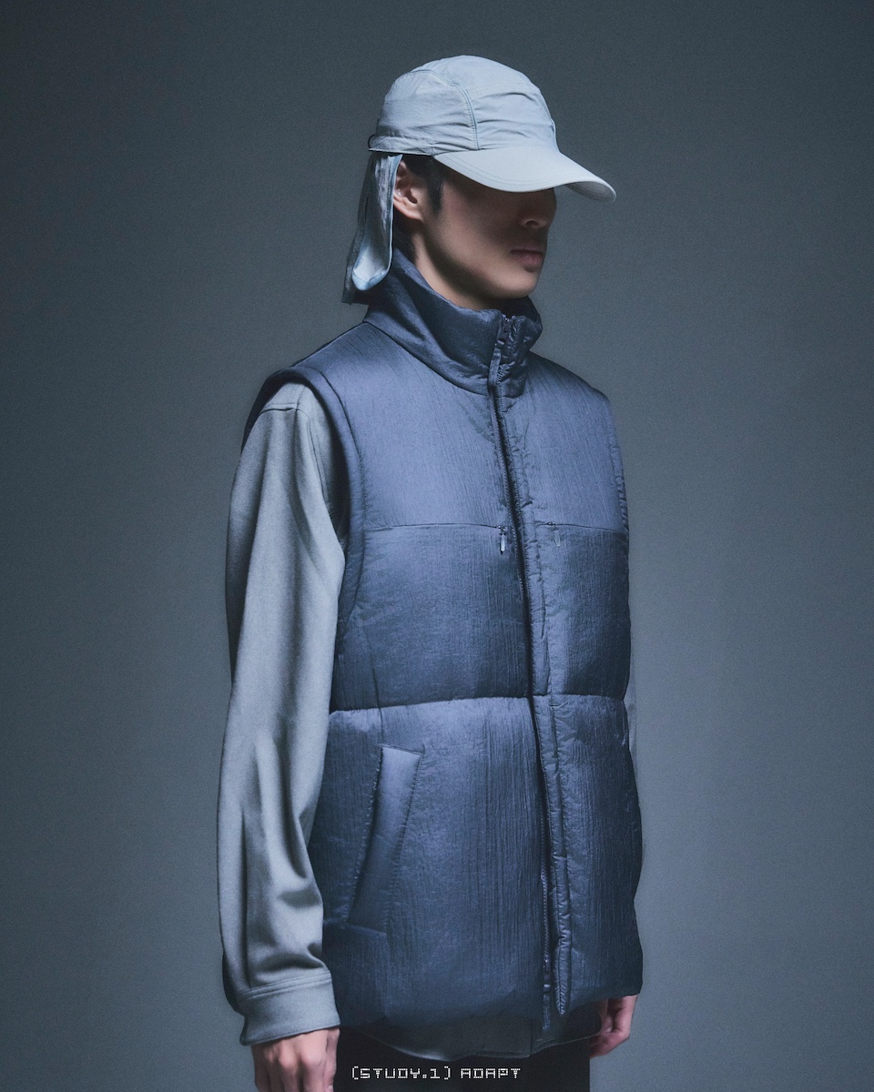 同ブランドは2023年春夏から24年秋冬にかけて“グレーカラー”を軸に、「楽天ファッションウィーク東京(Rakuten Fashion Week TOKYO)」でコレクションを発表。知的労働者を指すホワイトカラーや、肉体労働者を指すブルーカラーといった従来の枠組みに収まらない多様なワークスタイルに向け、快適性を備えたワードローブを提案してきた。今回の展示では、その“グレーカラー”シリーズに焦点を当て、プロトタイプやアーカイブを“アダプト”“サイズ”“カスタム”“ソース”のキーワードの下でさまざまなコンテンツをそろえる。機能性や素材開発、設計思想の変遷を、実物を手に取りながら体感できる内容となっている。