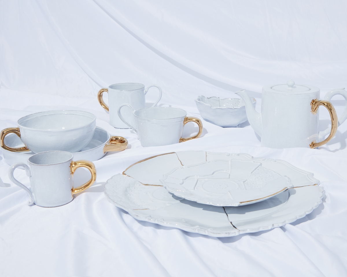 今回は新たにデミタスカップ1型を加え、これまでに登場したブランドのハイブリッド要素を融合させた、ゴールドの持ち手が特徴の陶器や、金継ぎを施した陶器など、全9型を展開する。