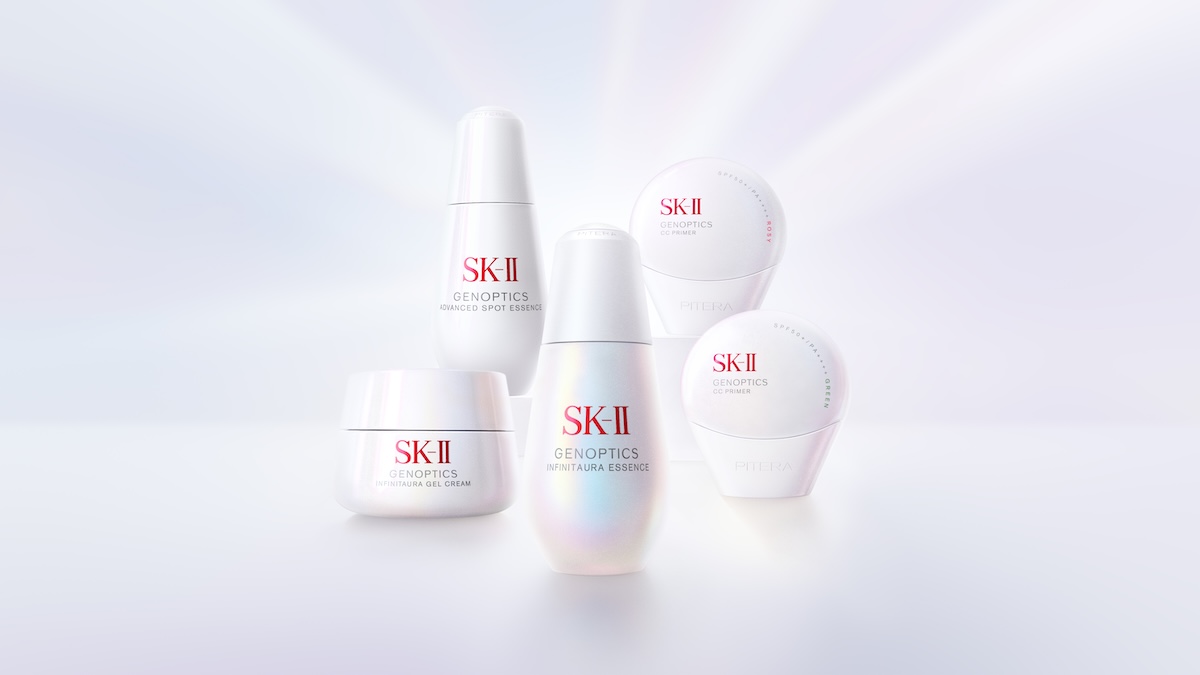 「SK-Ⅱ」はブライトニング研究で30年以上の歴史を持つ。1996年にナイアシンアミドによる美白臨床研究を開始し、2007年には美白有効成分として日本で初めて承認を取得。10年に透明感と肌の輝きを訴求した新しい美白のアプローチとして“オーラ肌”を提唱し、“オーラ肌”を目指す製品を拡充してきた。26年は、16年に発売した“ジェノプティクス”シリーズをより進化させる。