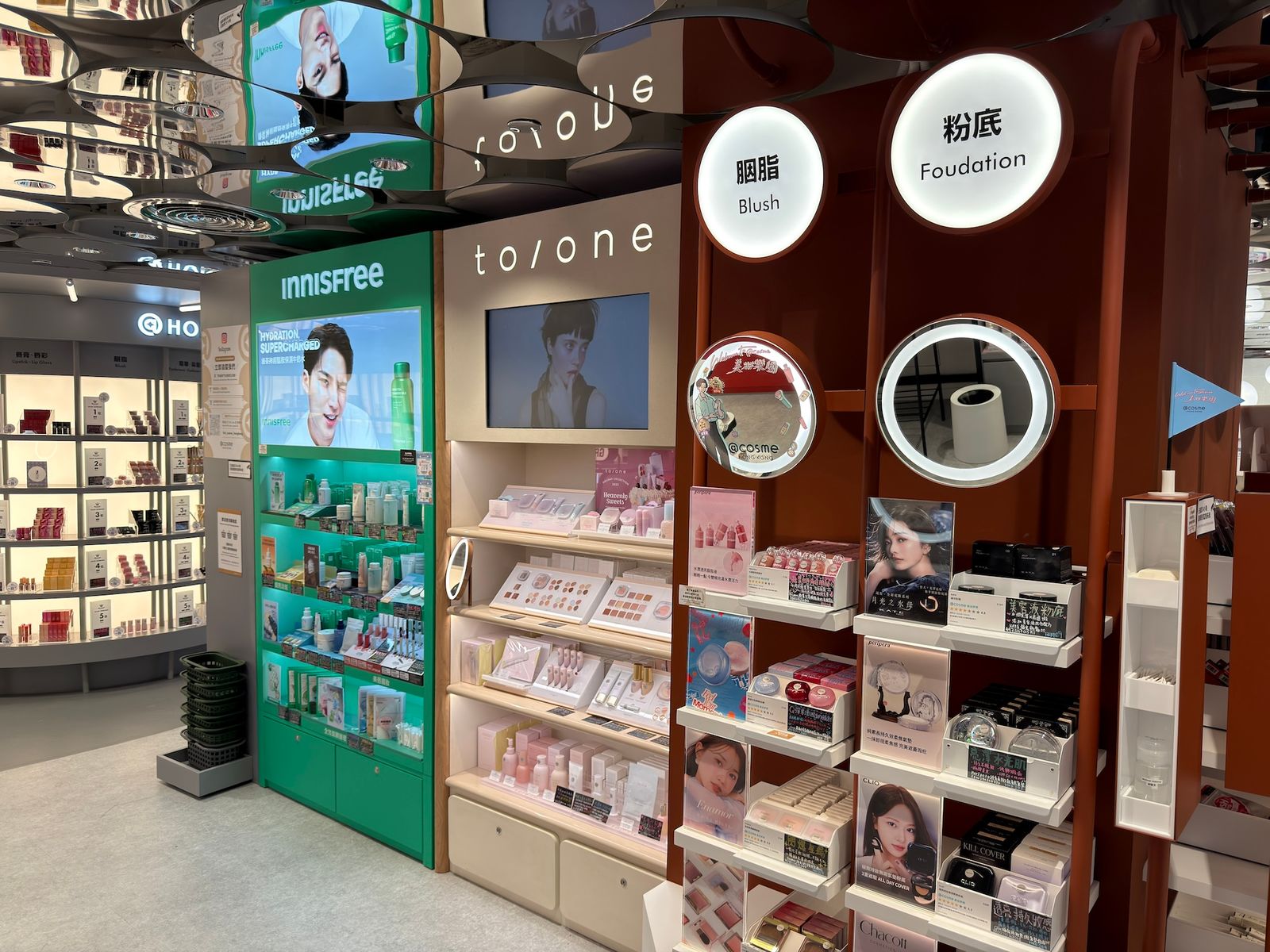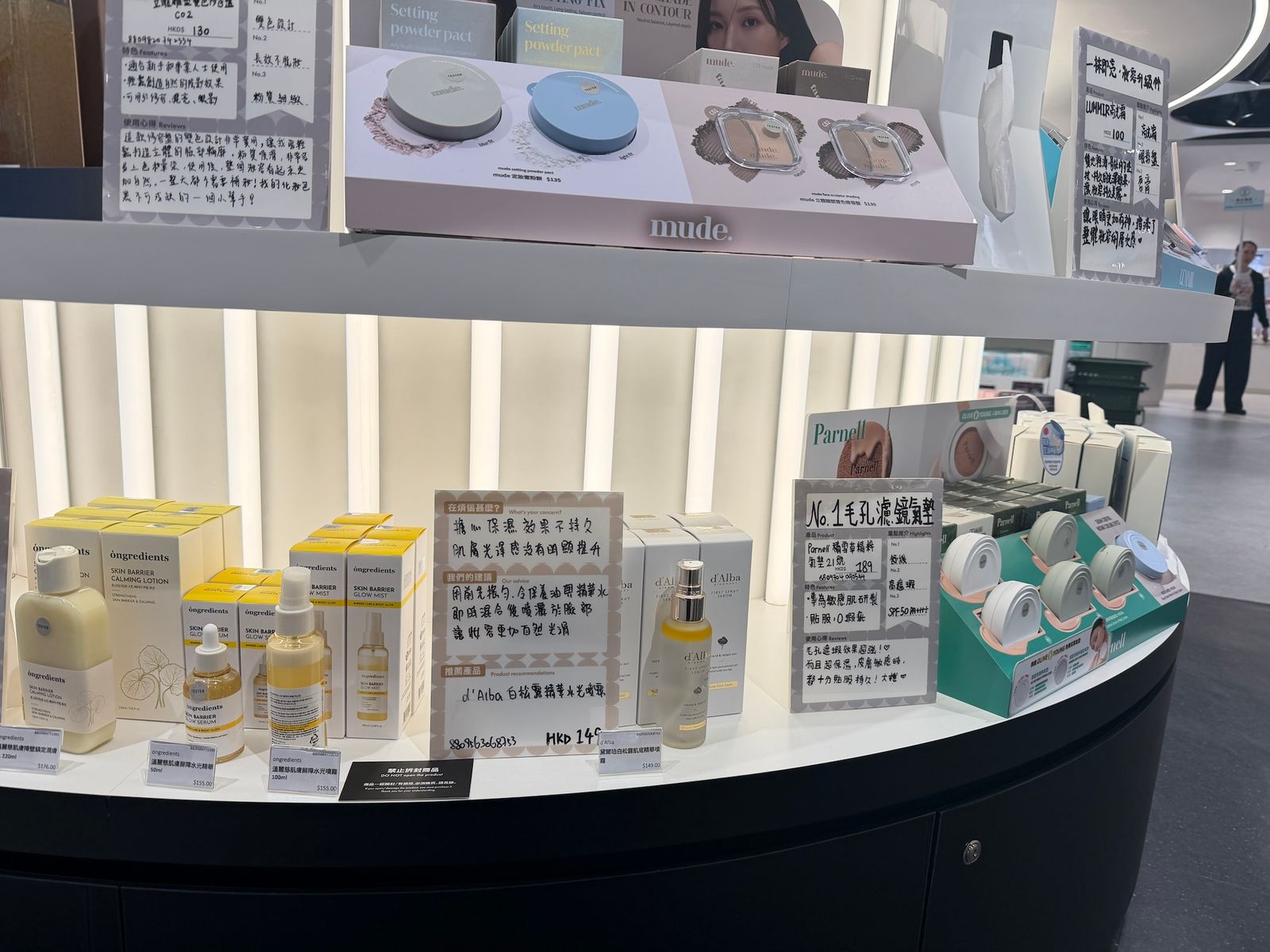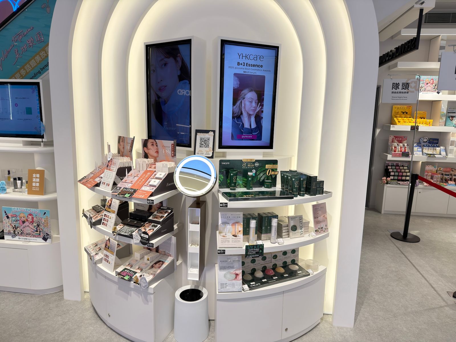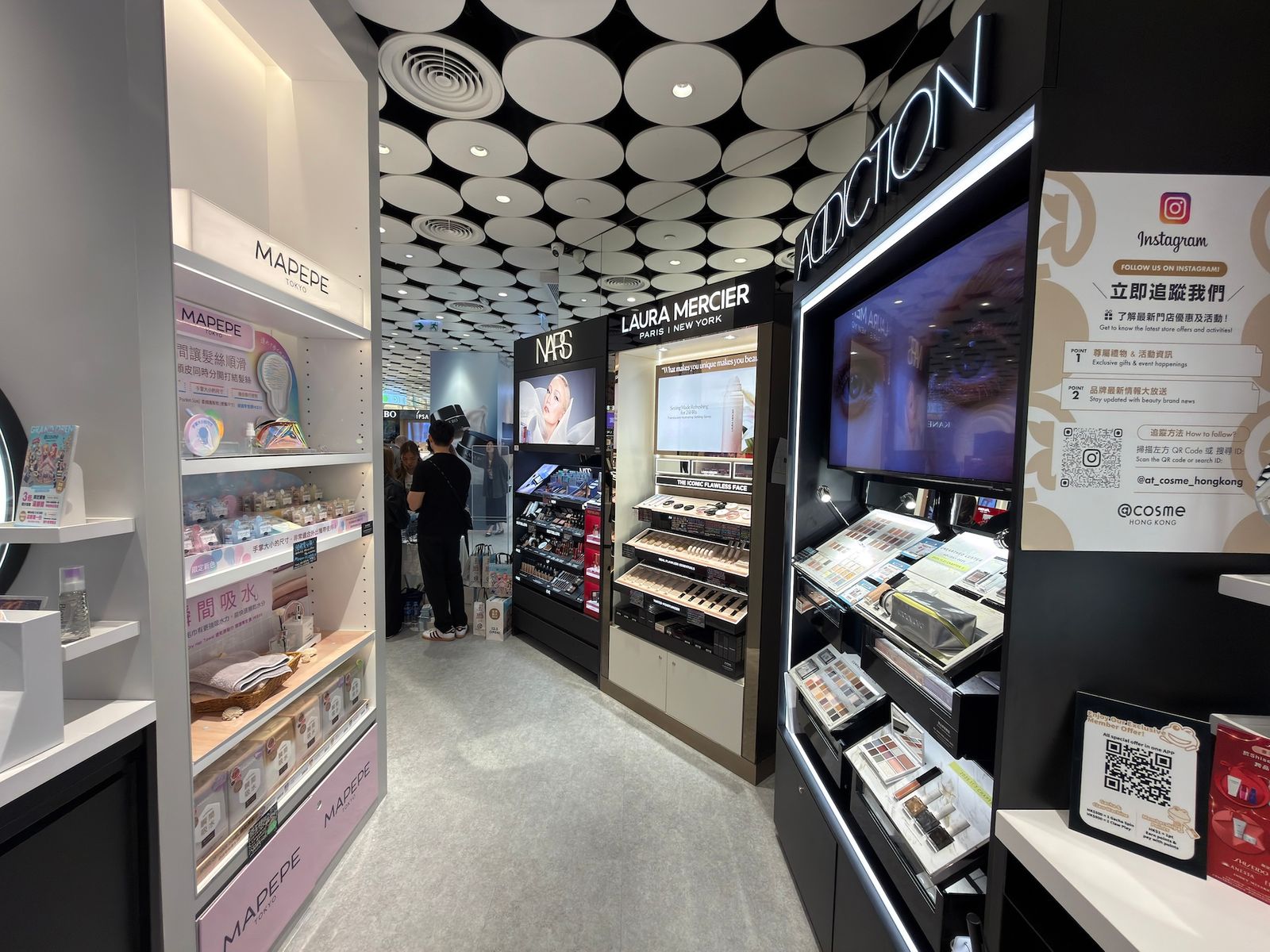 販売員は約50人で、日本での勤務経験を持つ香港籍スタッフも在籍する。「アットコスメ」の香港版アプリは英語と中国語に対応し、店頭のQRコードを読み取るとユーザーのレビューを即座に確認できる。AIによる商品特徴のサマリーにもアクセスでき、英語または中国語の音声案内が流れる仕組みも導入した。取り扱いブランドは約500に上り、構成比は日本ブランドが7割、韓国ブランドが3割で、ラグジュアリーブランドが残りを占める。