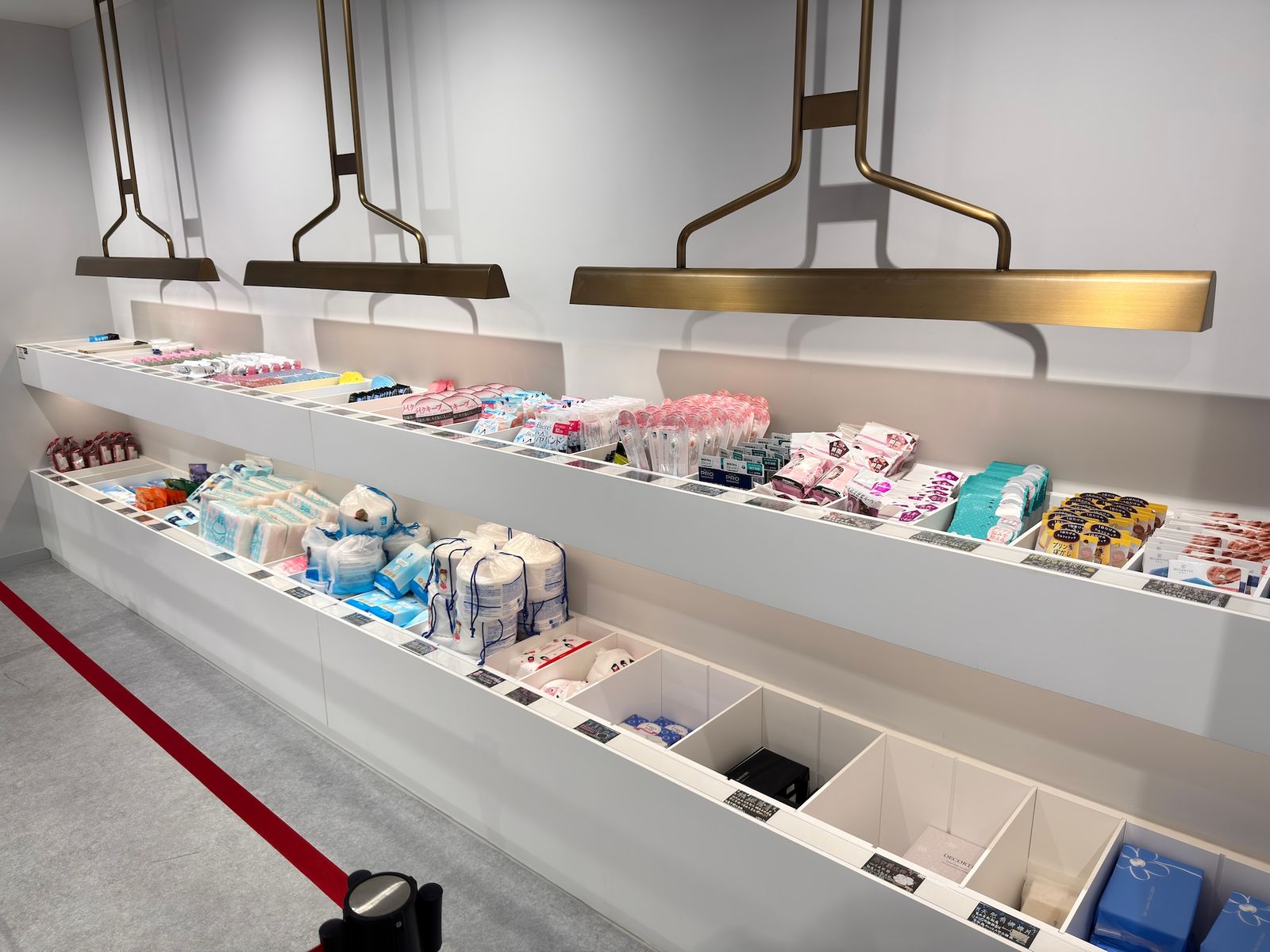 今回、香港・大埔区で大規模な高層住宅火災が発生したことを受け、アイスタイルは地域社会の復旧・復興支援の一助として、同店の売り上げの一部を現地の支援団体を通じて寄付すると発表した。オープン準備には日本から約20人が渡航し主要メンバーが現地に集結していたが、祝賀ムードは控えた。贈られた祝い花は正面に出さず、初日10時の開店は静かにシャッターを上げる形でスタートを切った。地元客や観光客と見られる客が吸い込まれるように来店し、店内では写真撮影をする人の姿も目立った。静かな開業でありながら人の流れを生み出しており、同店が香港でどのような役割を担うのか、今後の展開が注目される。