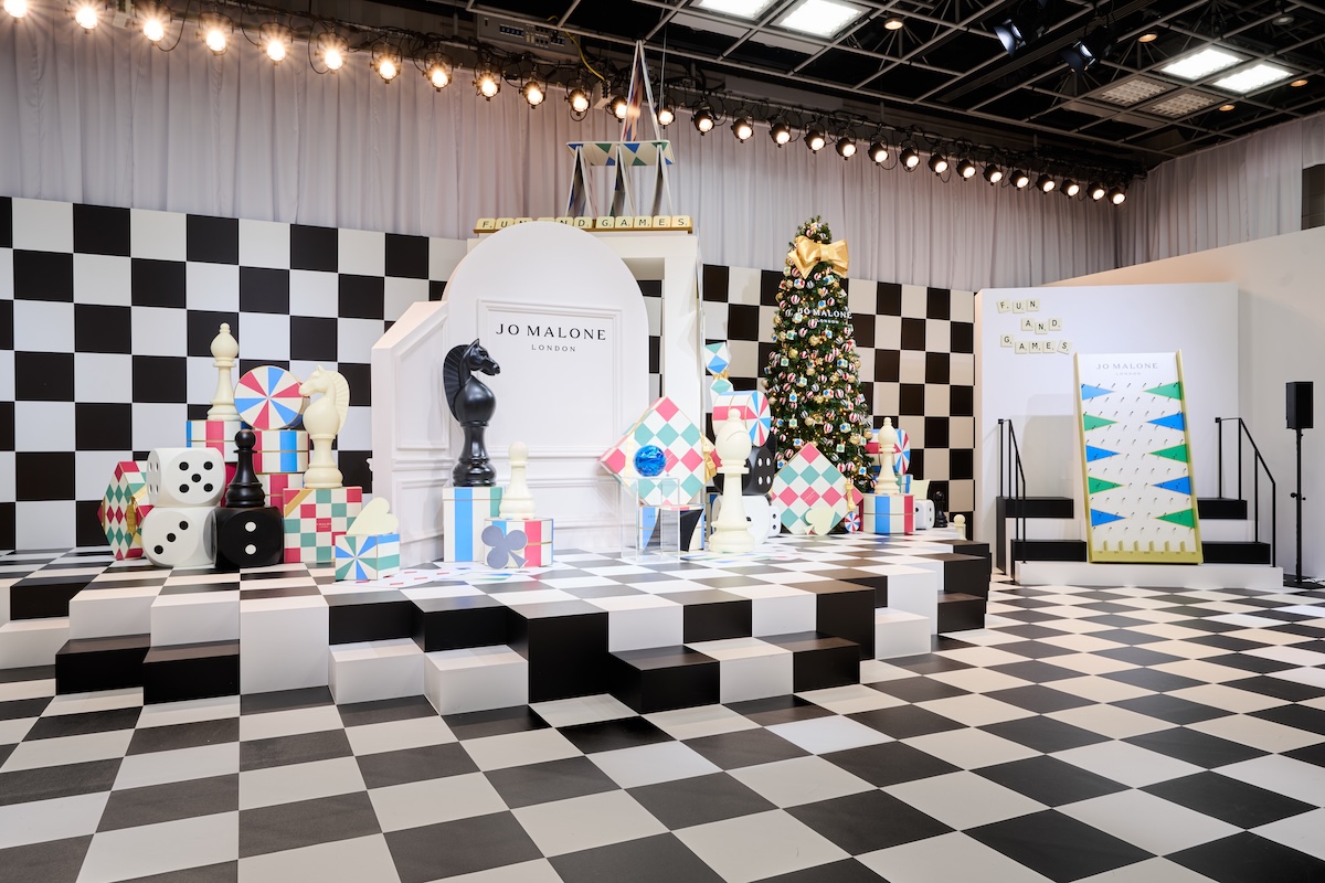 ポップアップは“Fun and Games”がテーマ。トランプパネルで彩った迷路の入り口を進むと、トランプ、チェスなどのアートピースのほか、きらびやかなクリスマスツリーやギフトボックス型フォトスポットなどが並び、華やかな空間を体験できる。会場にはほか、笠松将、谷まりあ、塩野瑛久、桜田通も訪れ、同イベントの開催を祝福した。