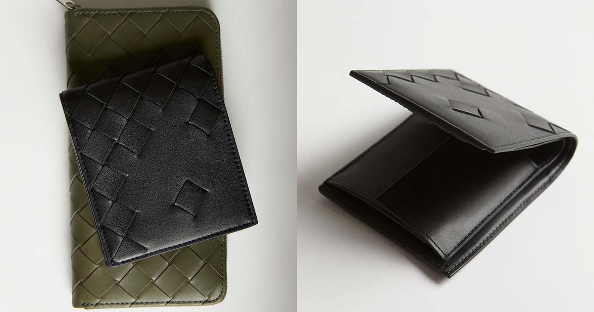 アーカイブにインスピレーションを得た“イントレチャート ピッコロ ウオレット”(11万6600円)やアヴェニューとトリヨンの2種類のレザーを合わせた素材のコントラストが特徴的な“イントレチャート コインパース付き二つ折りウオレット”(10万5600円)、ブランドを象徴するレザーの編み“イントレチャートをエンボス加工で表現した“イントレチャート スタンプ”(8万8000円)、“イントレチャート”のパターンを部分的に施した“イントレチャート 二つ折りウオレット”(10万5600円)などをそろえる。