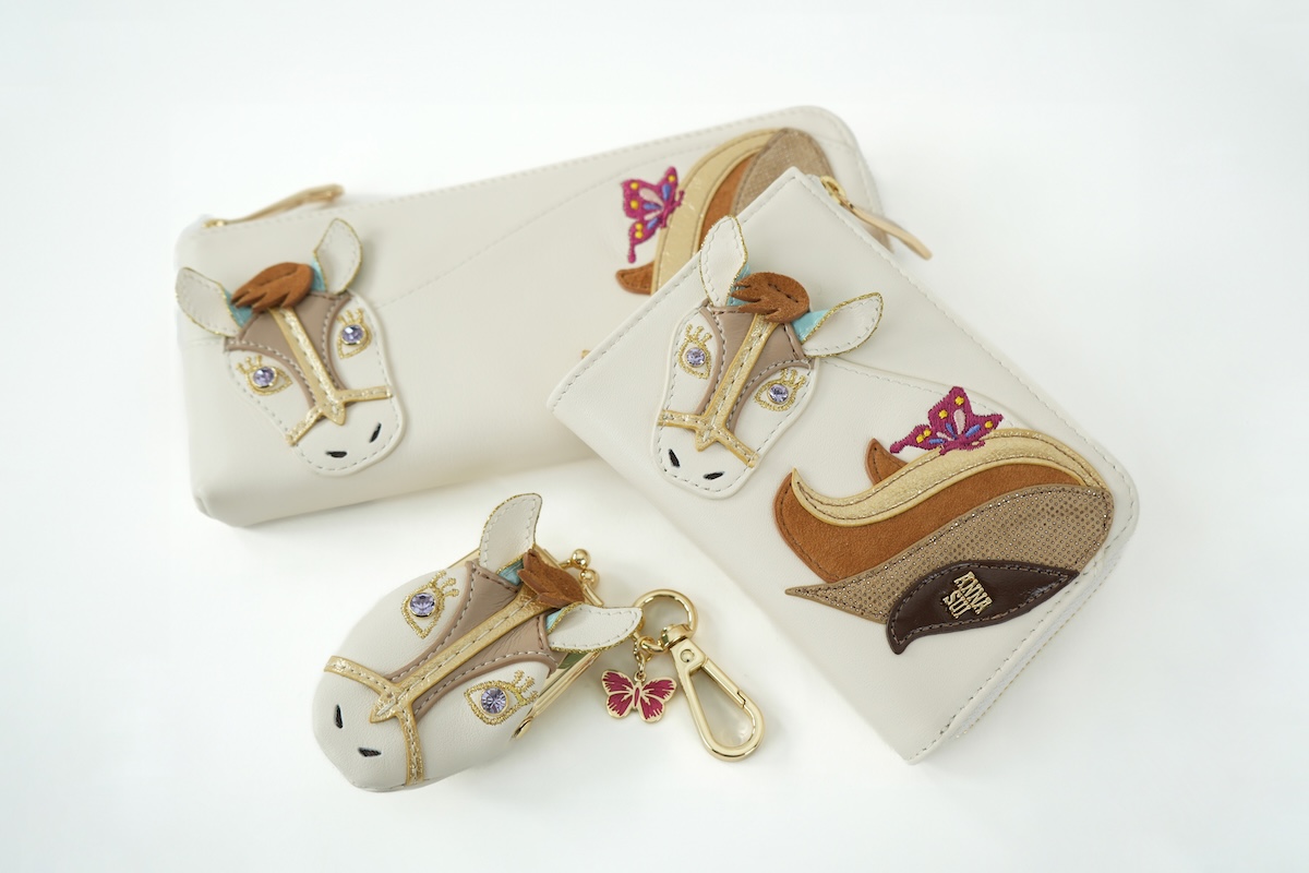 同シリーズは、馬の愛らしい表情や蝶のディテールを取り入れた、縁起の良さと華やかさを兼ね備えたコレクションで、“薄マチ長財布”(2万4200円)と“マルチケース”(2万900円)、“ミニ口金チャーム”(1万3200円)をそろえる。
