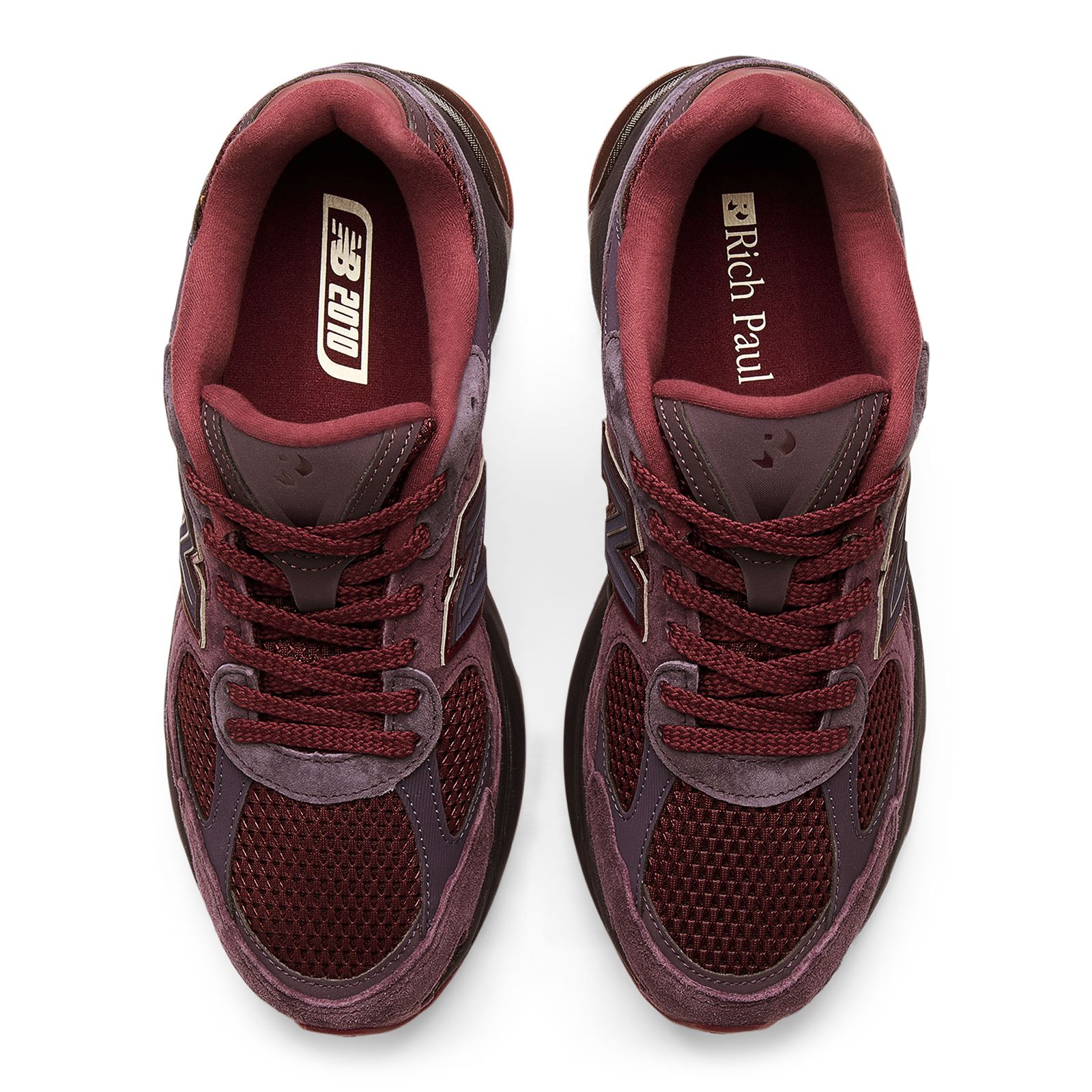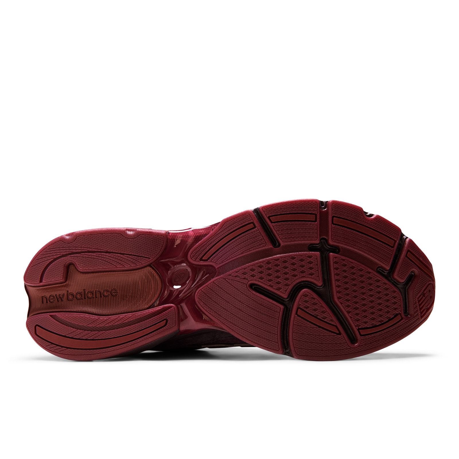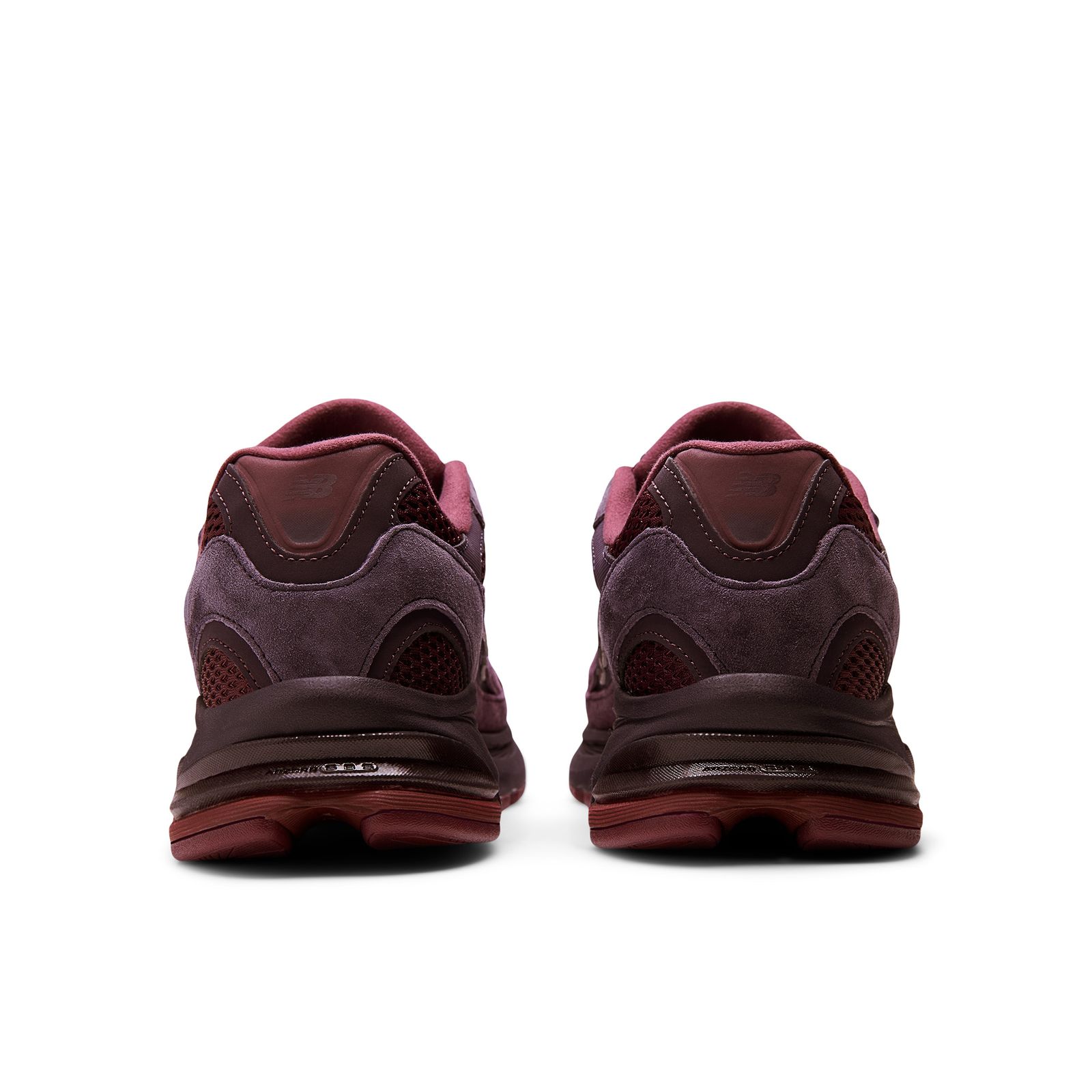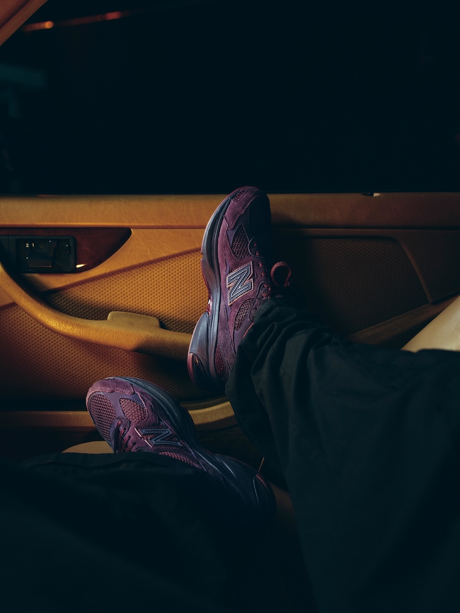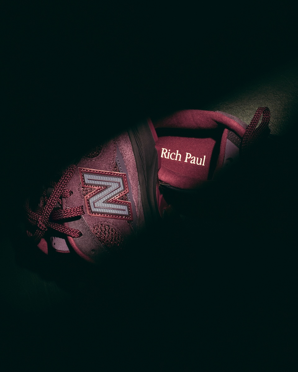 2000年台の名作に採用されてきたセグメント構造の“アブゾーブ”ソールを大胆に再構築し、デザインの中心に据え新たなスタイルの高揚感と懐かしさを併せ持つモデルに仕上げた。リッチ・ポールによるアレンジでは、ダイヤモンドメッシュに堅牢なレザーを重ね、深いプラムとバーガンディのカラーリングで存在感を演出した。