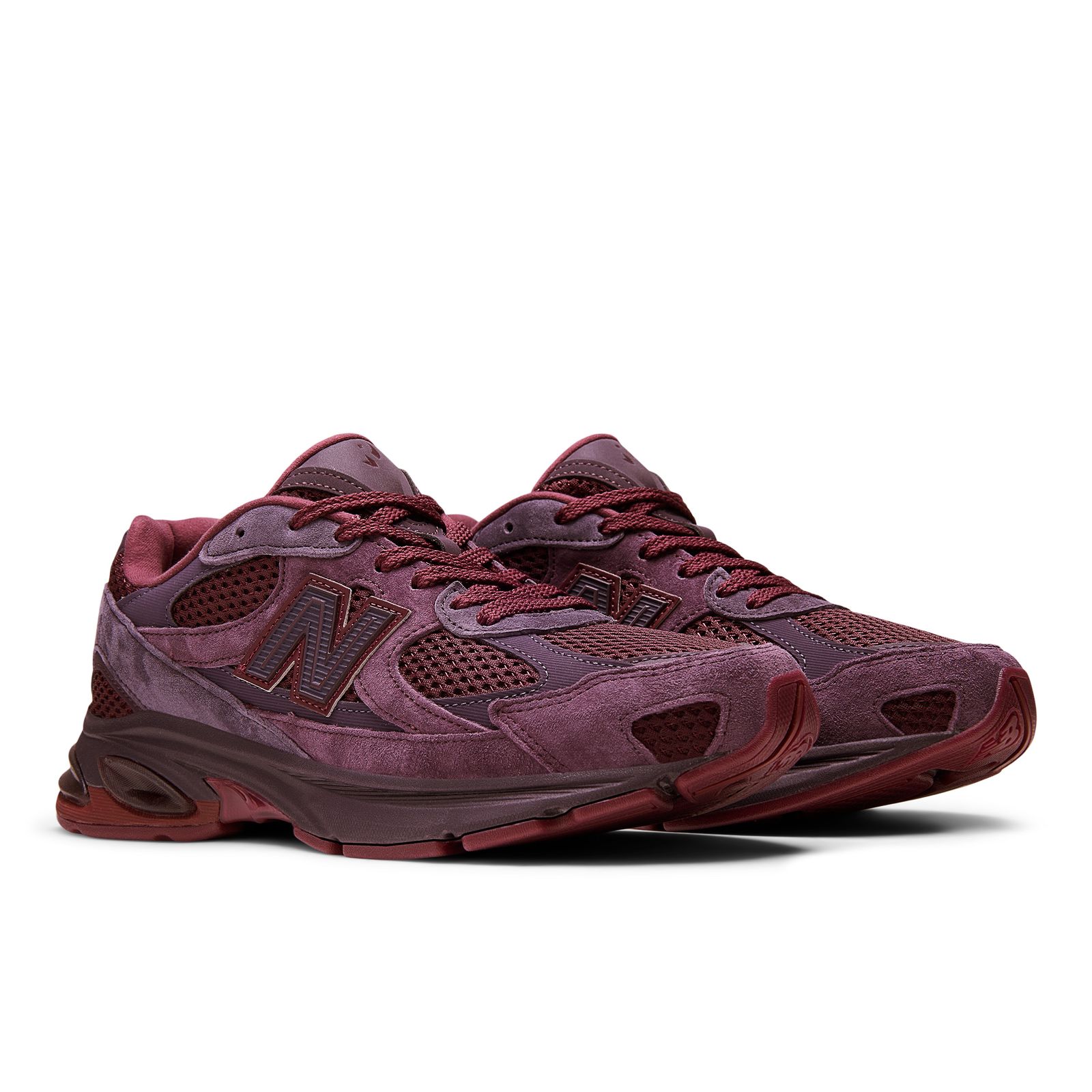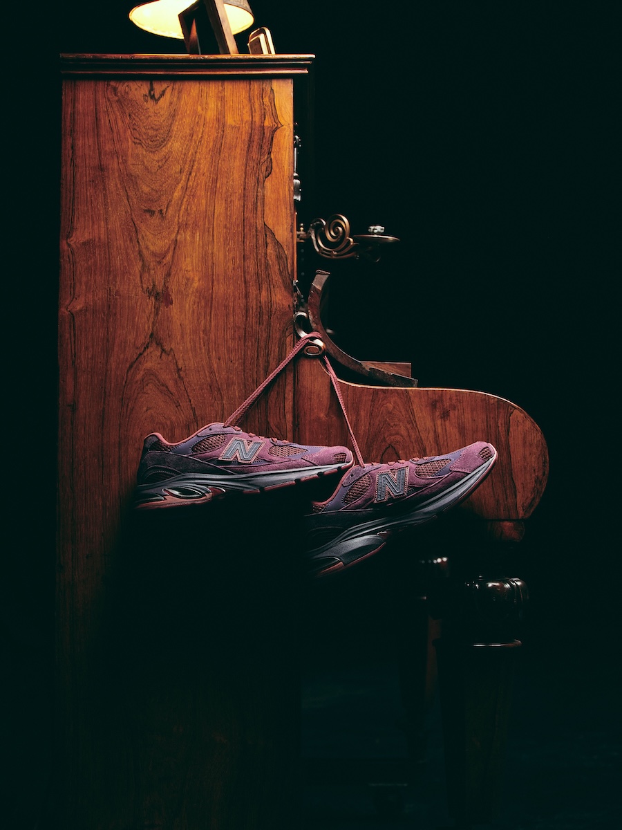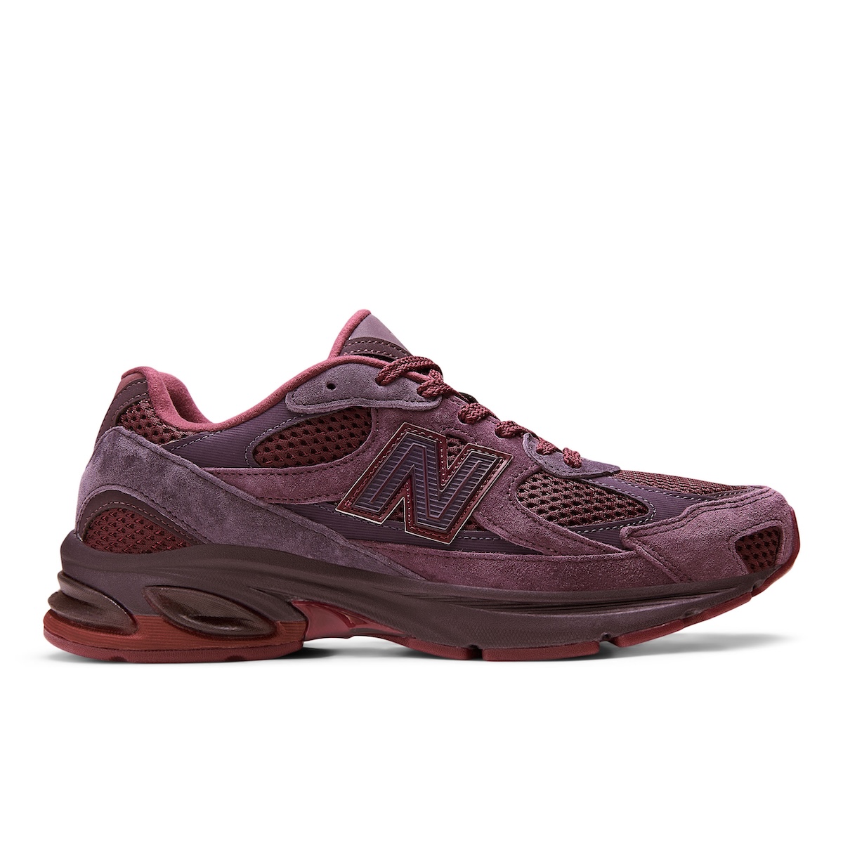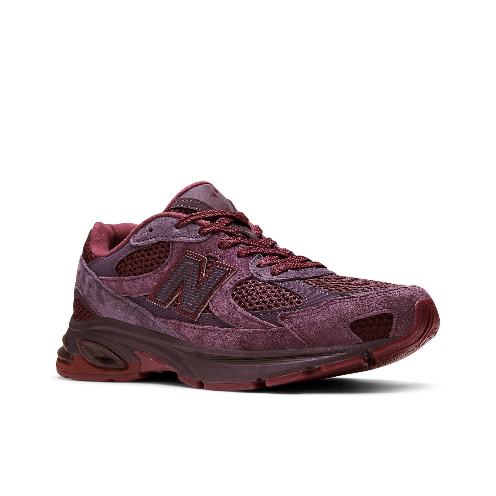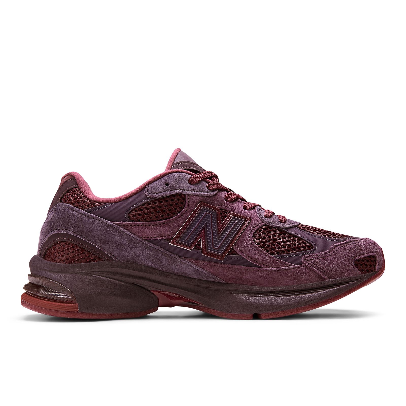 2000年台の名作に採用されてきたセグメント構造の“アブゾーブ”ソールを大胆に再構築し、デザインの中心に据え新たなスタイルの高揚感と懐かしさを併せ持つモデルに仕上げた。リッチ・ポールによるアレンジでは、ダイヤモンドメッシュに堅牢なレザーを重ね、深いプラムとバーガンディのカラーリングで存在感を演出した。