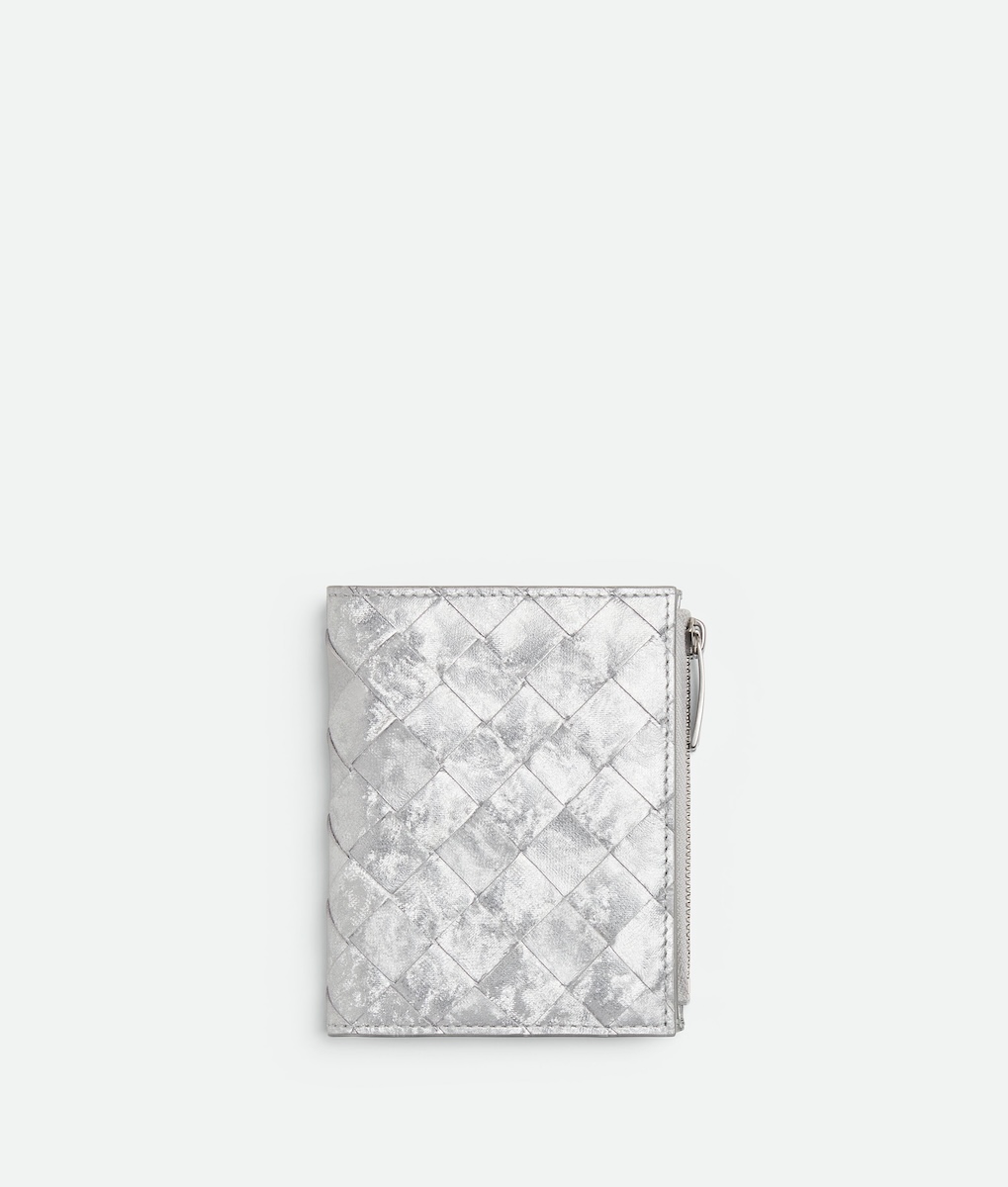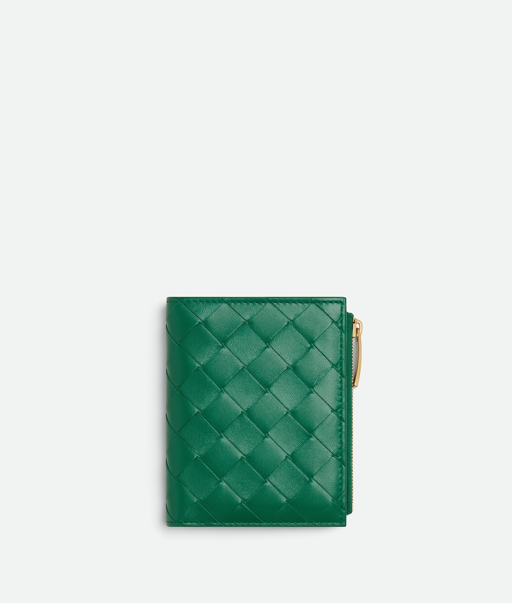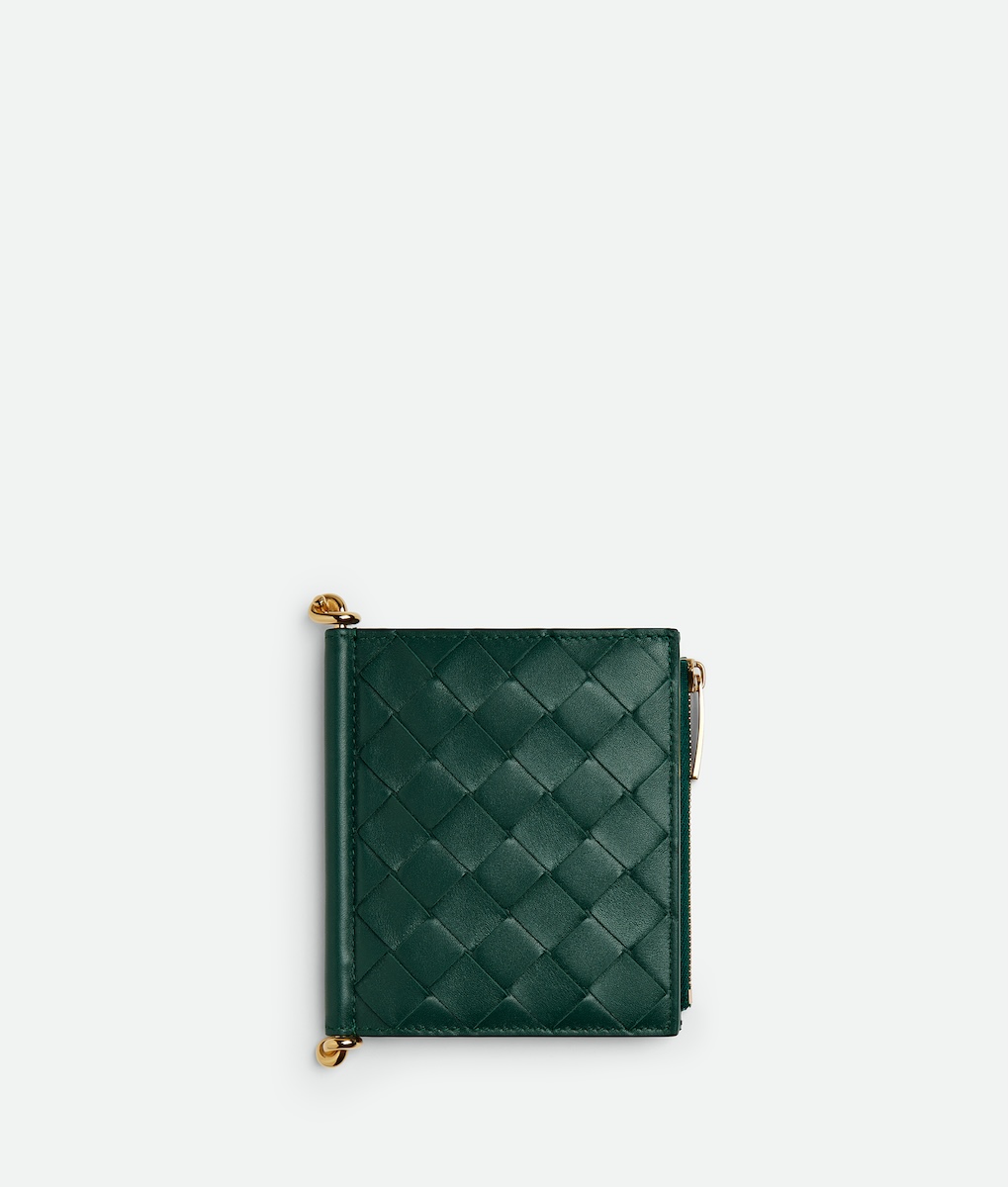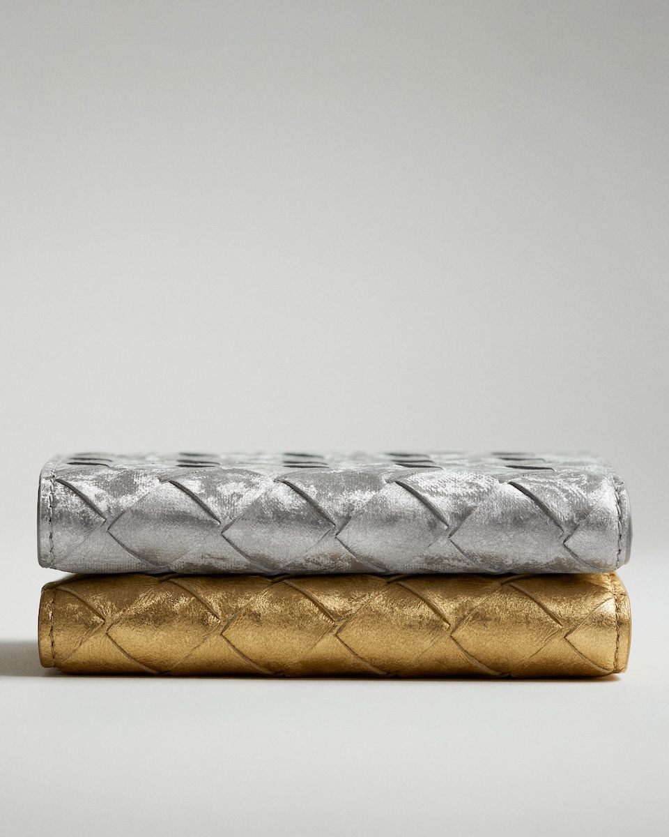 新たに登場したのは、アイコニックなレザーの編み“イントレチャート”をまとったグリーンやシルバー、ゴールドなどの“イントレチャート スモール 二つ折りウオレット”(全5種、10万5600〜12万4300円)だ。また、新作を含め一部のレザーアイテムには、エンボス加工でアルファベット刻印を施すパーソナライゼーションサービスを用意する。