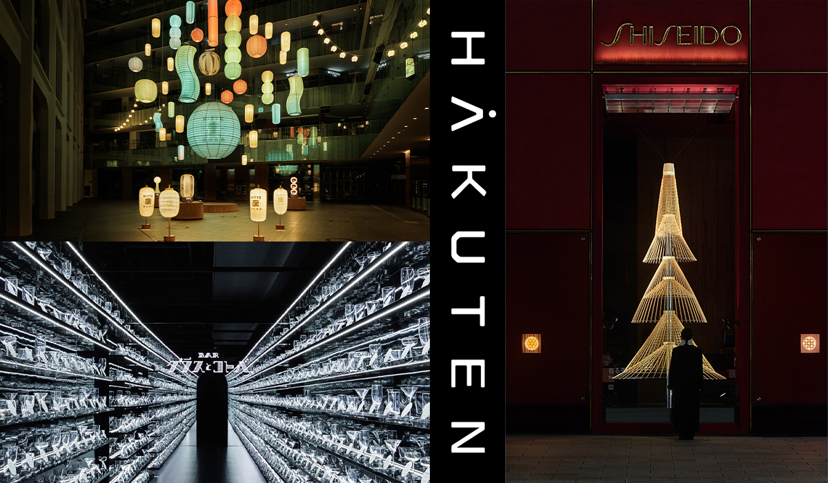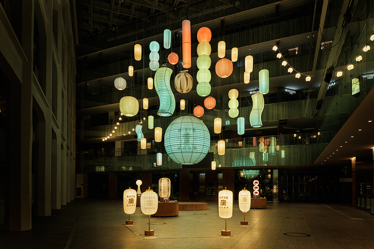 KITTE丸の内 「KITTE座 提灯音頭」:2025年8月、KITTE丸の内アトリウムで大小さまざまな提灯を飾った夏祭りイベントを開催。茨城・京都・福岡の提灯職人が手掛けた提灯に照明を仕込み、オリジナル楽曲「提灯音頭」に合わせて動く仕掛けを作った。地方と都市をつなぐ“東京”という場所と施設の文脈を考え、地方の提灯職人の技術を結集した