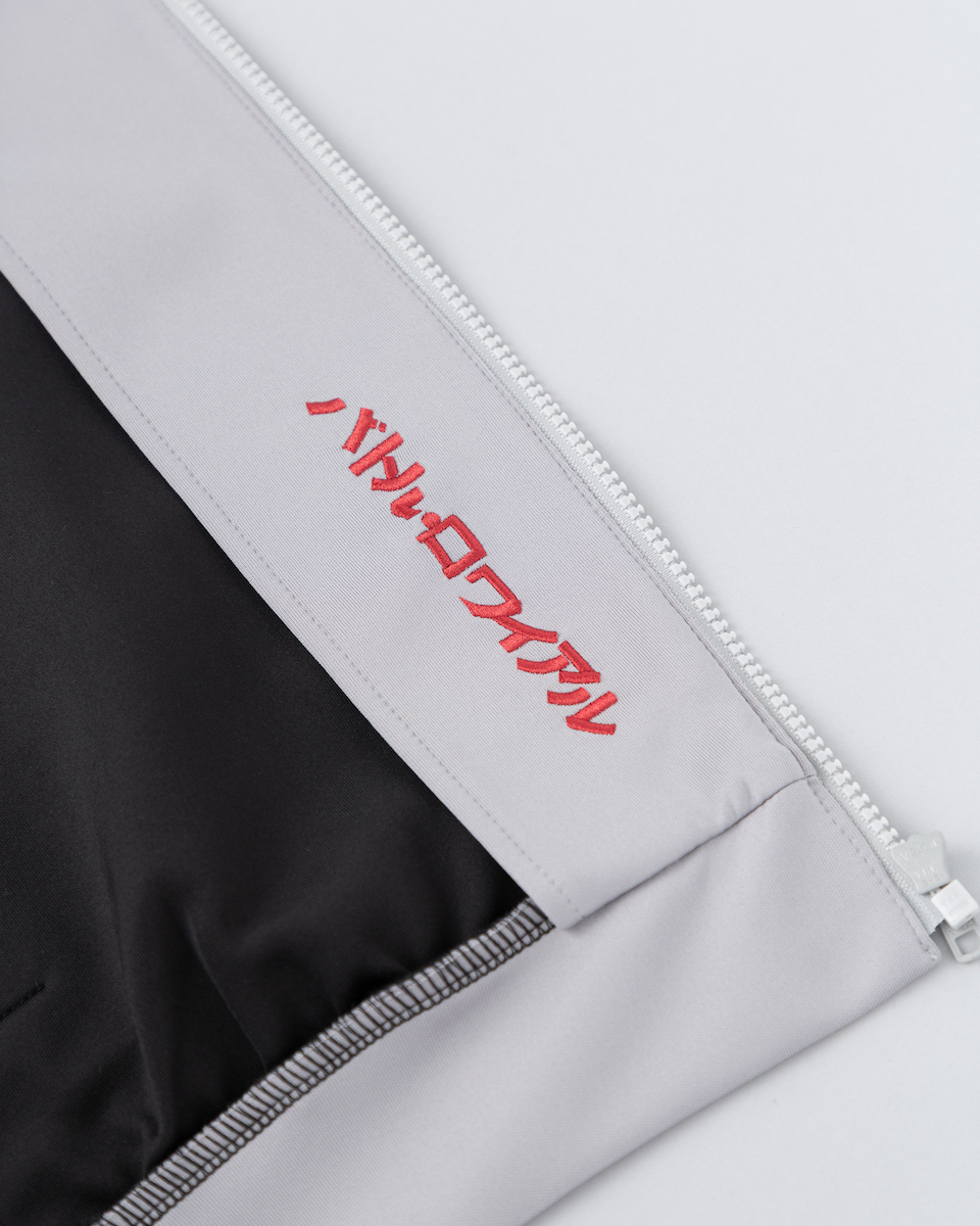 今回のコラボは、「バトル・ロワイアル」の公開25周年を記念して実現し、ジャージーのセットアップとオリジナルTシャツを制作した。ジャージーは、作中で北野武が演じる教師・キタノが着用していた架空のブランド「ノースフィールド スポーツ(NORTHFIELD SPORTS)」のアイテムを再現した仕上がりで、トップスの内側にはタイトルロゴの“バトル・ロワイアル”を赤文字で刺しゅうしている。一方Tシャツは、「ノースフィールド スポーツ」をイメージしたオリジナルデザインで、左胸にロゴをあしらった。
