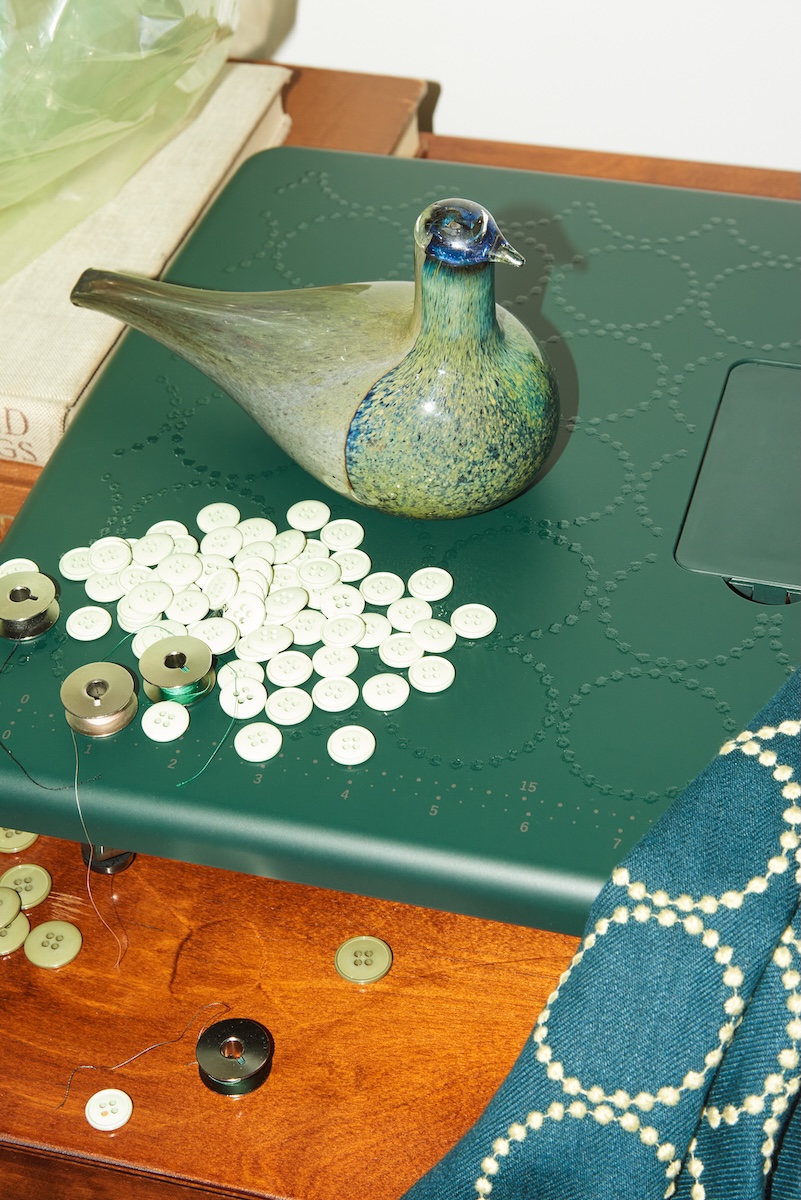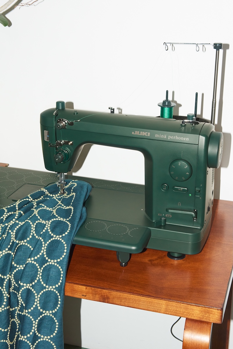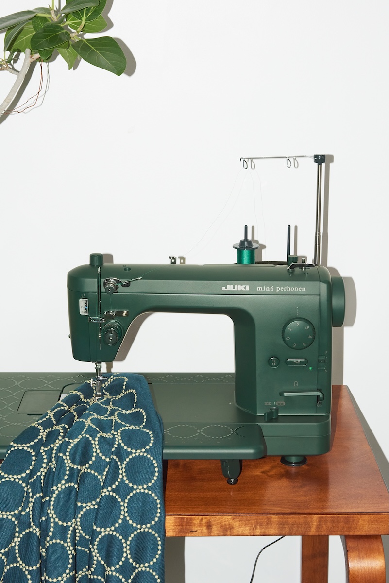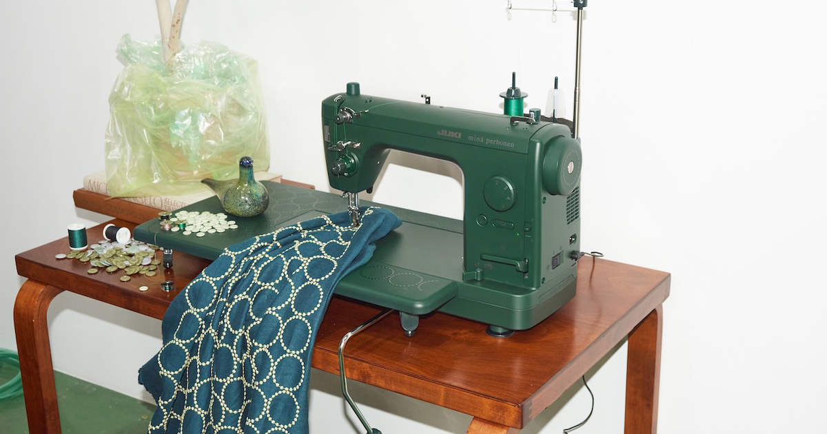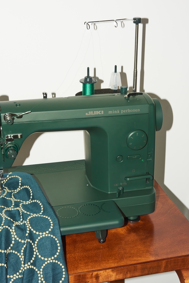 「ミナ ペルホネン」がJUKIとコラボ ディープグリーンをまとった限定モデルのミシンが登場