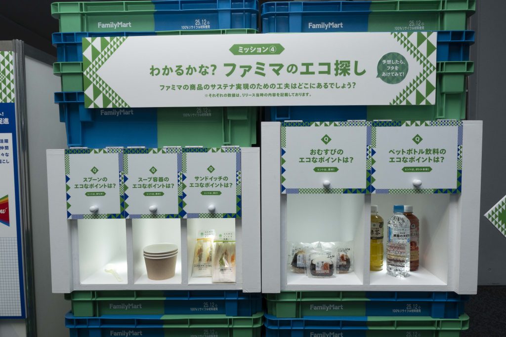 食品ロス削減の取り組みとして話題になった「涙目シール」や、家庭で余っている食品を回収し、循環させる「ファミマフードドライブ」など、ファミマが取り組むサステナビリティを遊び感覚で学べる体験型ミッションが用意されています。