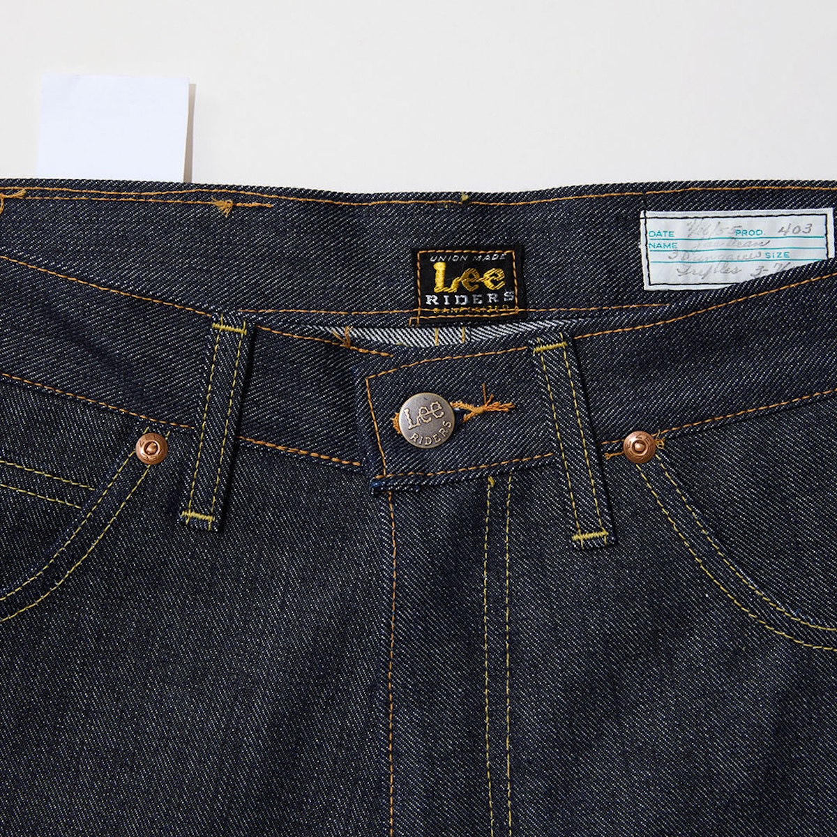“Lee 101-Z 1955”(3万3000円)は、俳優のジェームズ・ディーン(James Dean)が愛用したモデルを復刻した。彼の主演映画「理由なき反抗」で着用した“Lee 101-Z”、通称“センター黒タグ”の仕様をベースに、当時のモデルを再現。ベルトの内側には映画の衣装として使用されていたことを示すタグを配し、イニシャルの“JD”スタンプを押印した。