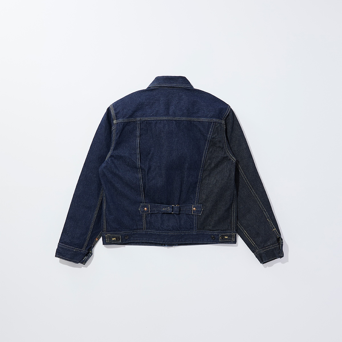“ドッキング 101”は、1930年代の“カウボーイ”と1940年代の“ライダース”を融合したジャケット(3万8500円)とジーンズ(2万7500円)を展開。左右で異なるデニム生地を使用し、“カウボーイ”は右綾、“ライダース”は左綾となっているため、履き込むほどに左右で異なる色落ちが現れる仕様だ。バックポケットやレザーラベル、ステッチワークなどのディティールも左右で変化をつけ、遊び心とストーリー性を兼ね備えた。