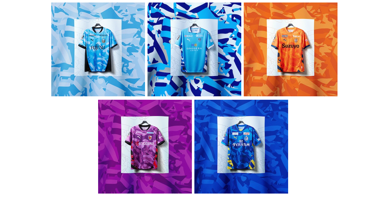 本ユニホームは、“HEAT OF FOOTBALL”を共通コンセプトに制作し、川崎フロンターレ、横浜FC、清水エスパルス、京都サンガF.C.、大分トリニータのプーマが契約する5クラブが着用する。全クラブで共通のグラフィックパターンを採用しながら、クラブカラーやチームの想いに合わせて配置や配色を調整することで、それぞれの個性を活かしたデザインに仕上げた。
