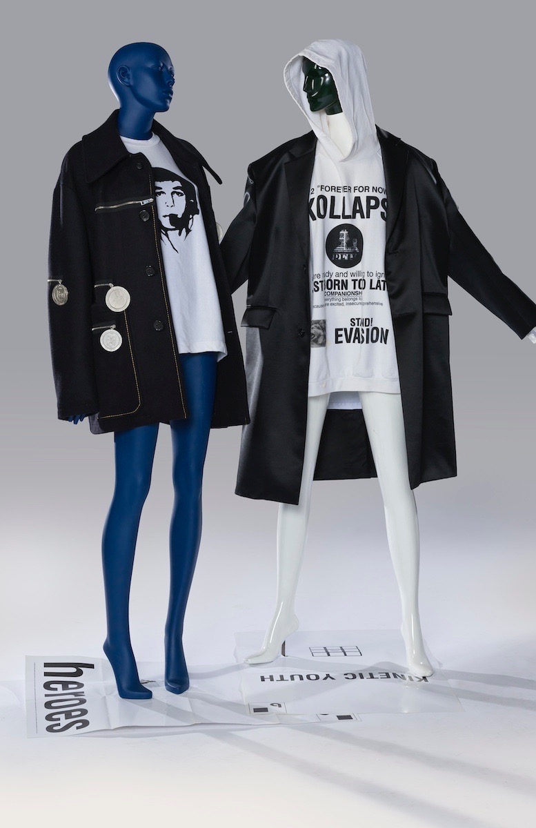 同イベントでは、初期の代表的なコレクション“Kollaps”や“Riot Riot Riot”をはじめ、スターリング・ルビーとのコラボレーション、“ツイン・ピークス(Twin Peaks)”コレクションなど、約30年にわたる作品群の中から、ラフ・シモンズ本人が厳選した貴重なピースが並ぶ。