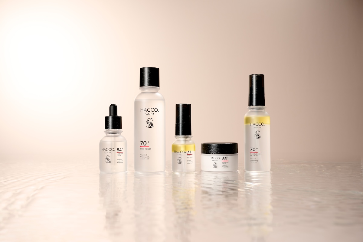 エコトーンが9月16日にローンチした「ハッコウパンダ(HACCO.PANDA)」は、独自のコメ発酵液を使用した発酵スキンケアブランドだ。有機栽培米あきたこまちを白神山地産由来の天然酵母で発酵したコメ発酵液がキー成分となっている。NMF由来の保湿成分を11種類配合したコメ発酵液を、化粧品の基材としてメジャーな精製水の代わりに採用。主力の“発酵導入美容液”(10mL、770円/50mL、2200円)には、コメ発酵液を84%以上配合している。