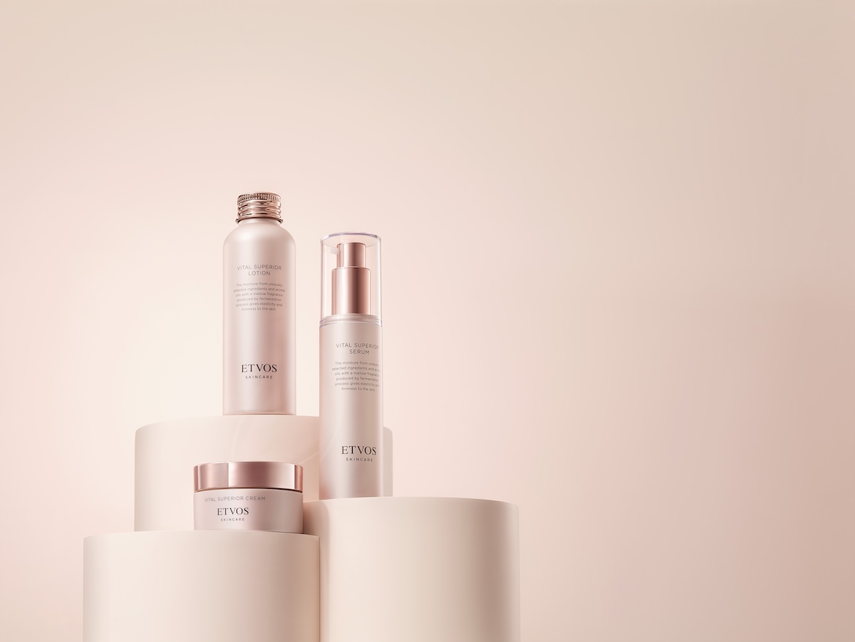 「エトヴォス(ETVOS)」は、最高峰スキンケアライン“ヴァイタルスペリア”のために独自の発酵アロマオイル成分“エフィセント358”を開発した。ローズ、サンダルウッド、カシスの3種の香調成分をベースに、24金でコーティングされた釜で発酵醸成し、モーツァルトの音楽を48時間聴かせ微弱な音波振動を与えることで微生物の活性を促進。豊かな栄養成分を壊さないように低温蒸留で抽出している。上品で落ち着いた香りが特徴で、艶とハリのある肌へ導く。