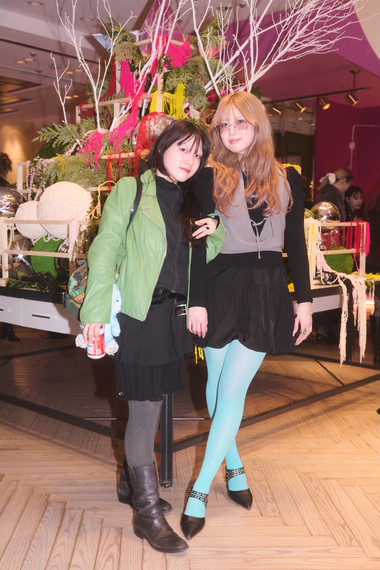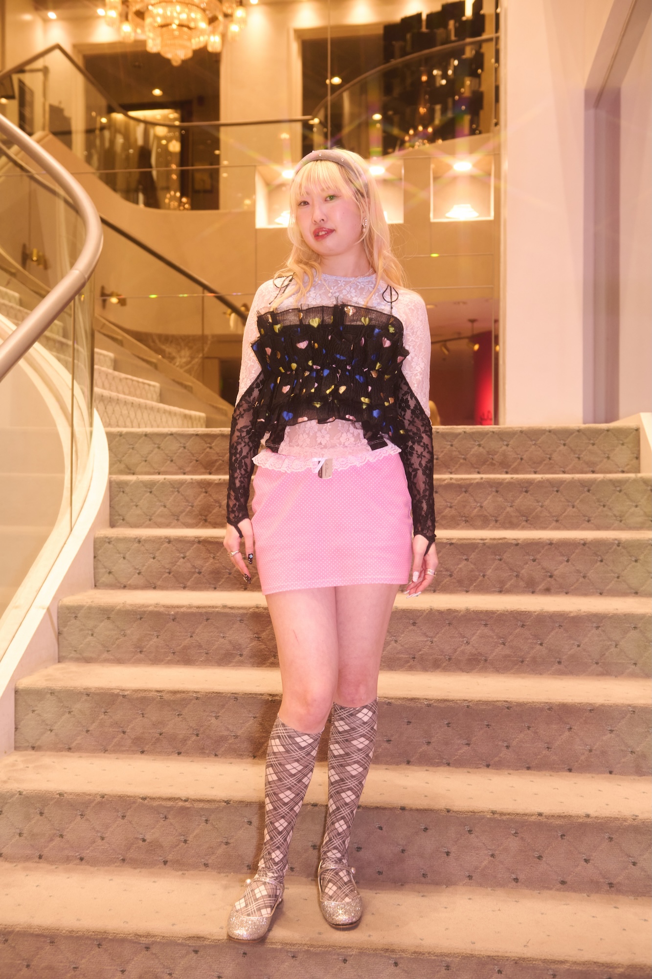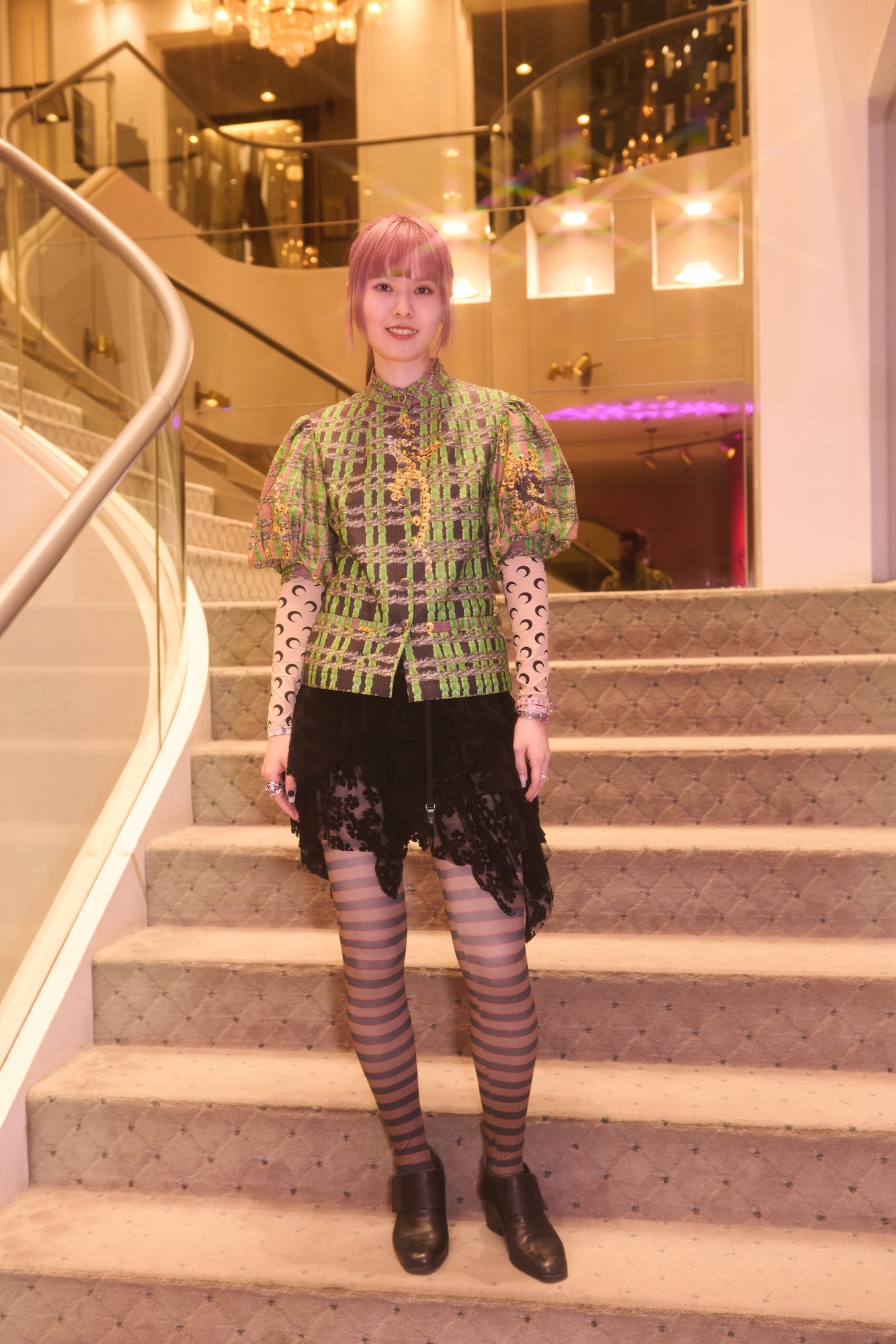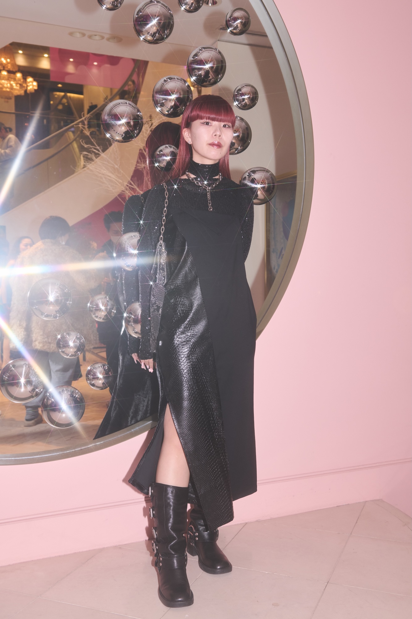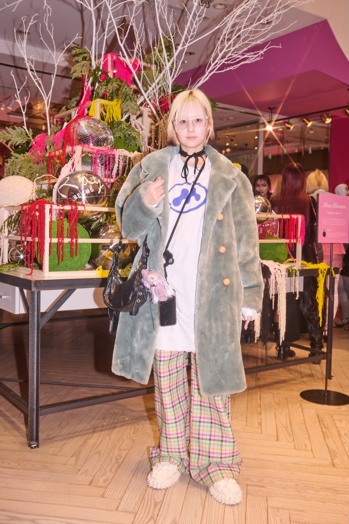 当日のドレスコードは“パーティースタイル”。会場には、スパンコールやファーといった装飾性の高いアイテムで、色鮮やかなスタイリングの来場者が目立つ一方、テーラードジャケットやレザーアイテムを軸にシックにまとめたスタイルも多く見られた。足元は「メゾン マルジェラ(MAISON MARGIELA)」のタビブーツやウエスタンブーツをはじめとしたポインテッドトゥのレザーシューズが主流だった。ほか、大胆なファーシューズを選ぶ来場者の姿もあった。シルエットや素材感で個性を表現しながらそれぞれがホリデームードを楽しんでいた。