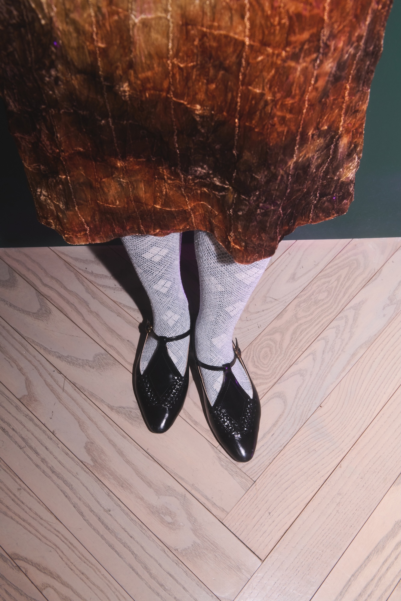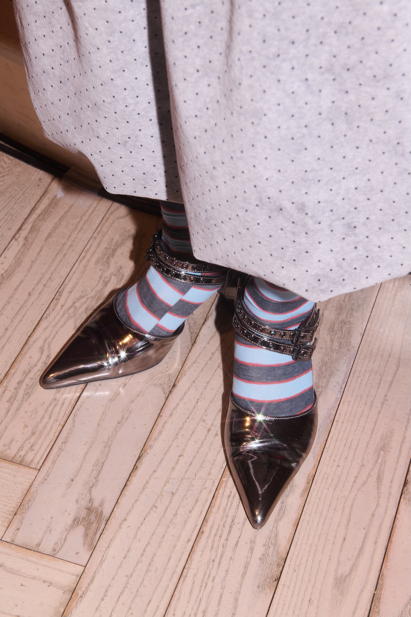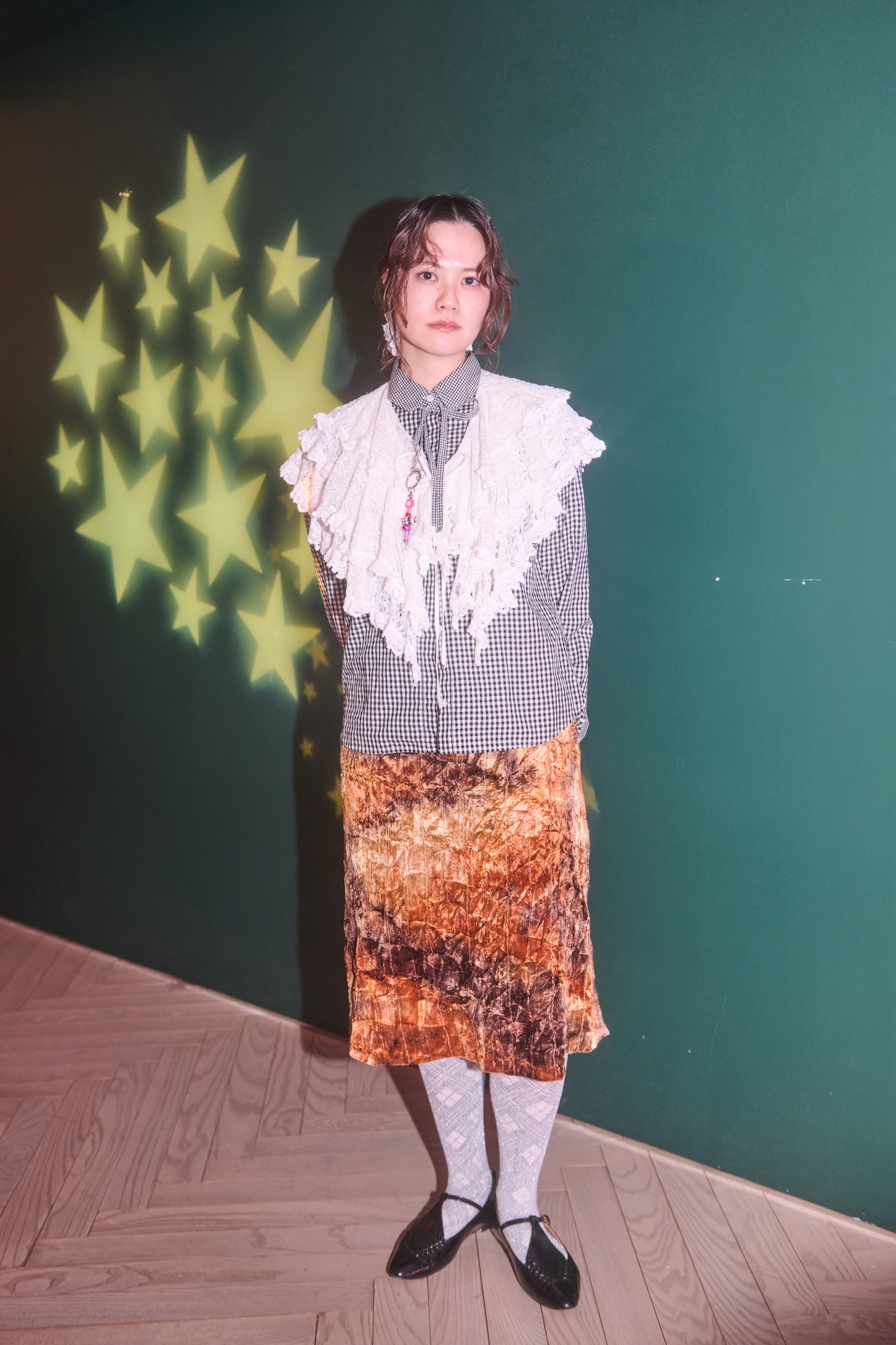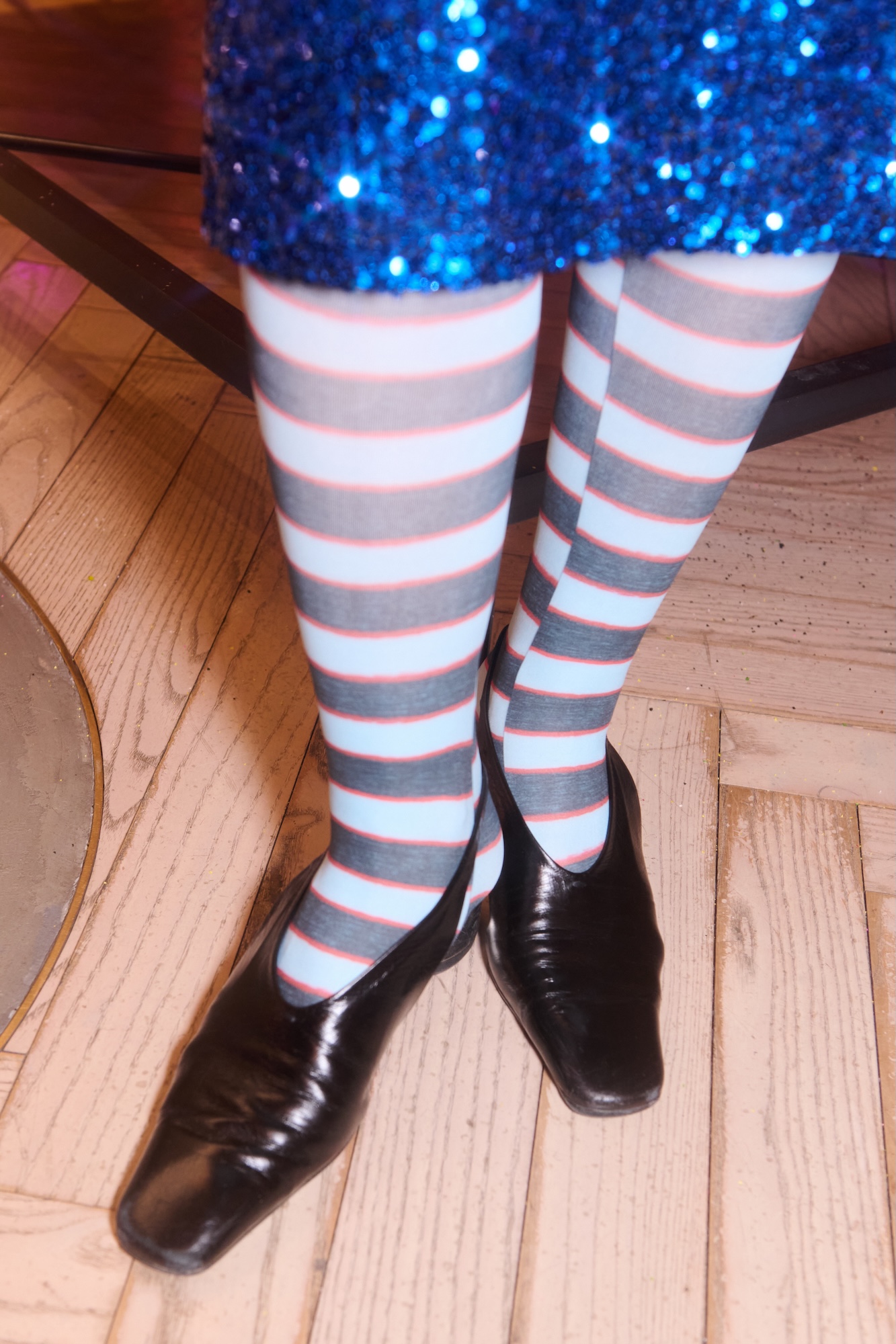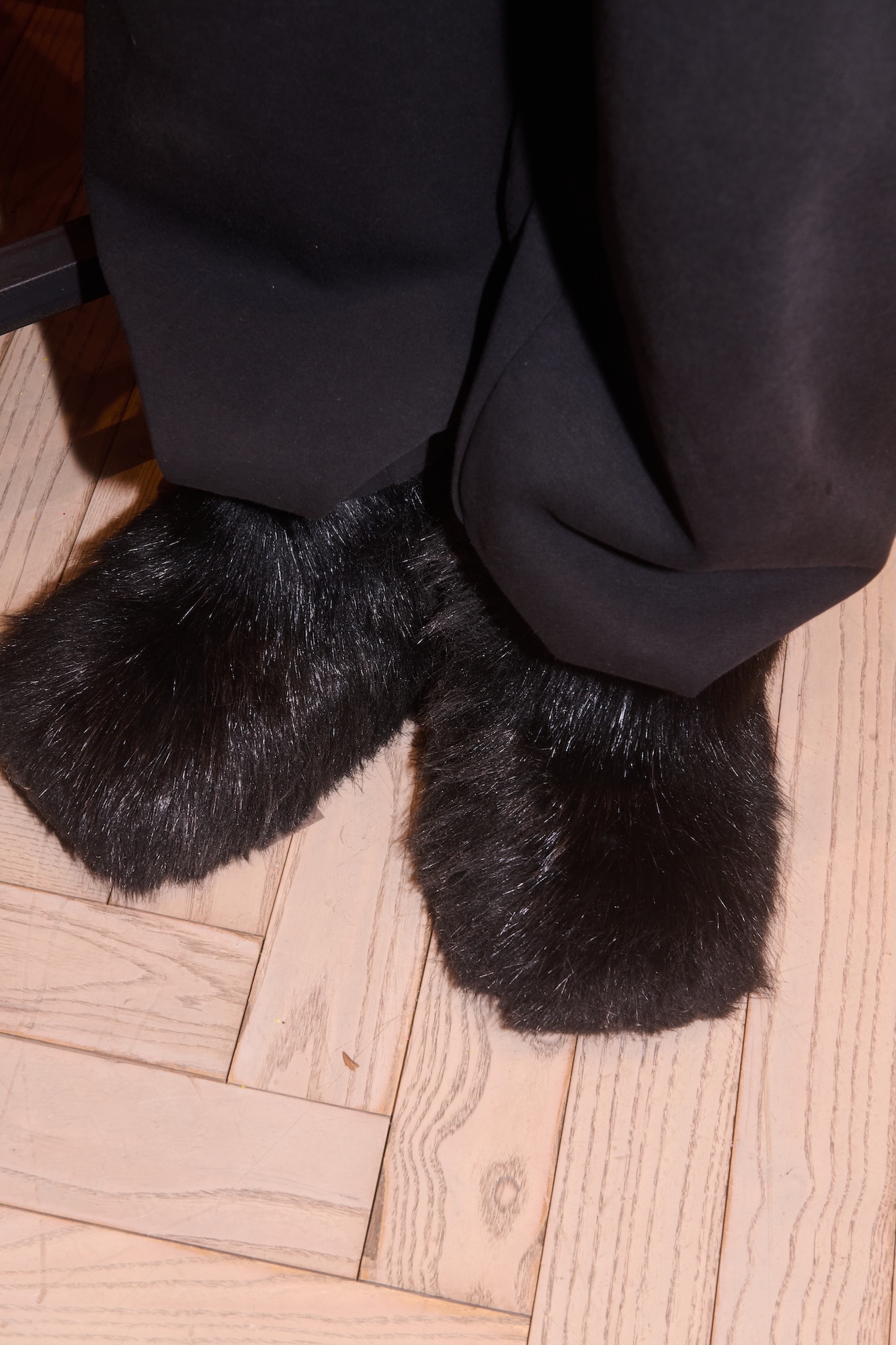 当日のドレスコードは“パーティースタイル”。会場には、スパンコールやファーといった装飾性の高いアイテムで、色鮮やかなスタイリングの来場者が目立つ一方、テーラードジャケットやレザーアイテムを軸にシックにまとめたスタイルも多く見られた。足元は「メゾン マルジェラ(MAISON MARGIELA)」のタビブーツやウエスタンブーツをはじめとしたポインテッドトゥのレザーシューズが主流だった。ほか、大胆なファーシューズを選ぶ来場者の姿もあった。シルエットや素材感で個性を表現しながらそれぞれがホリデームードを楽しんでいた。