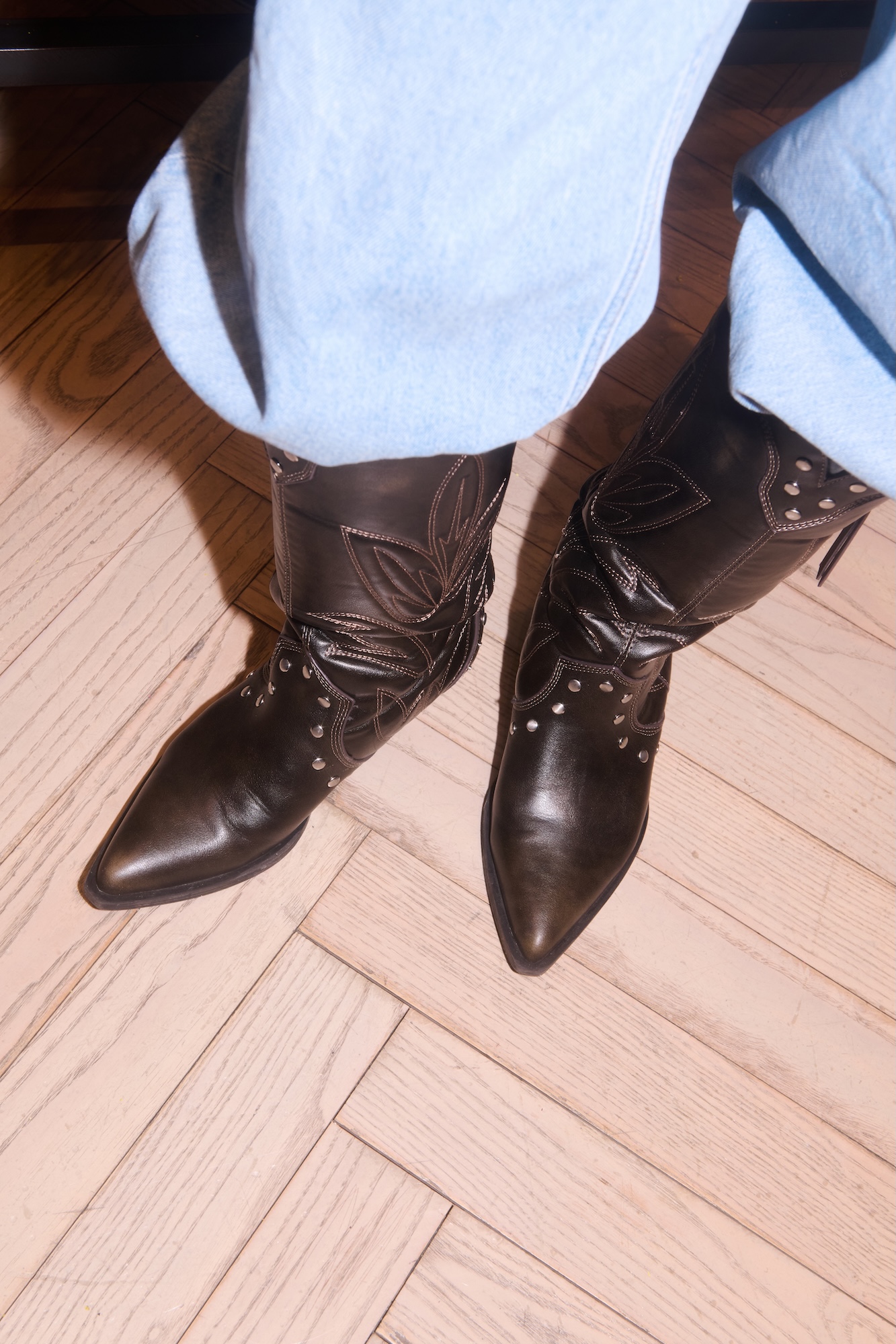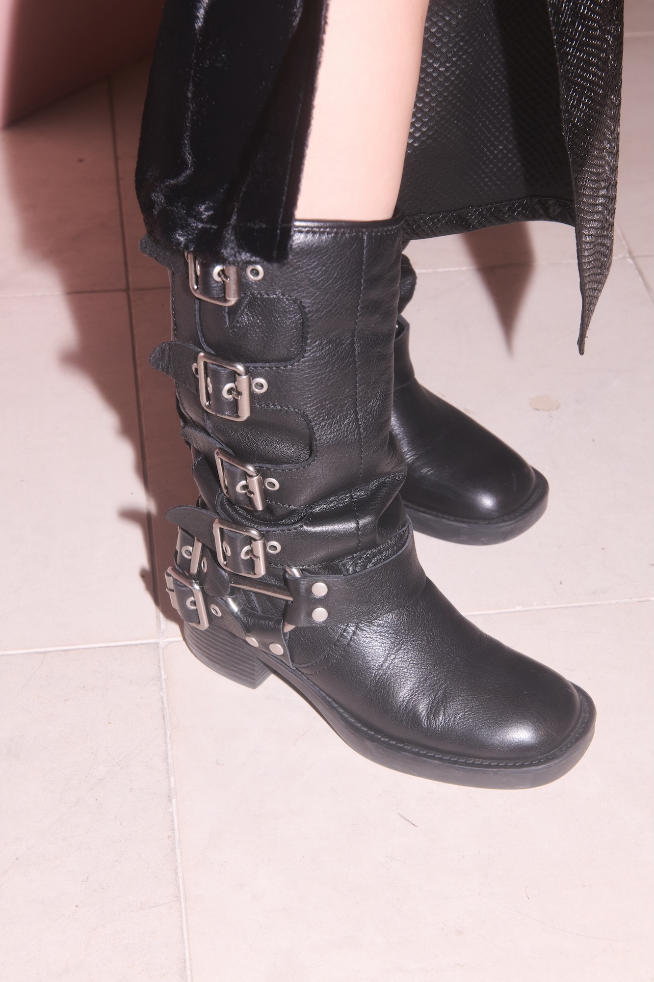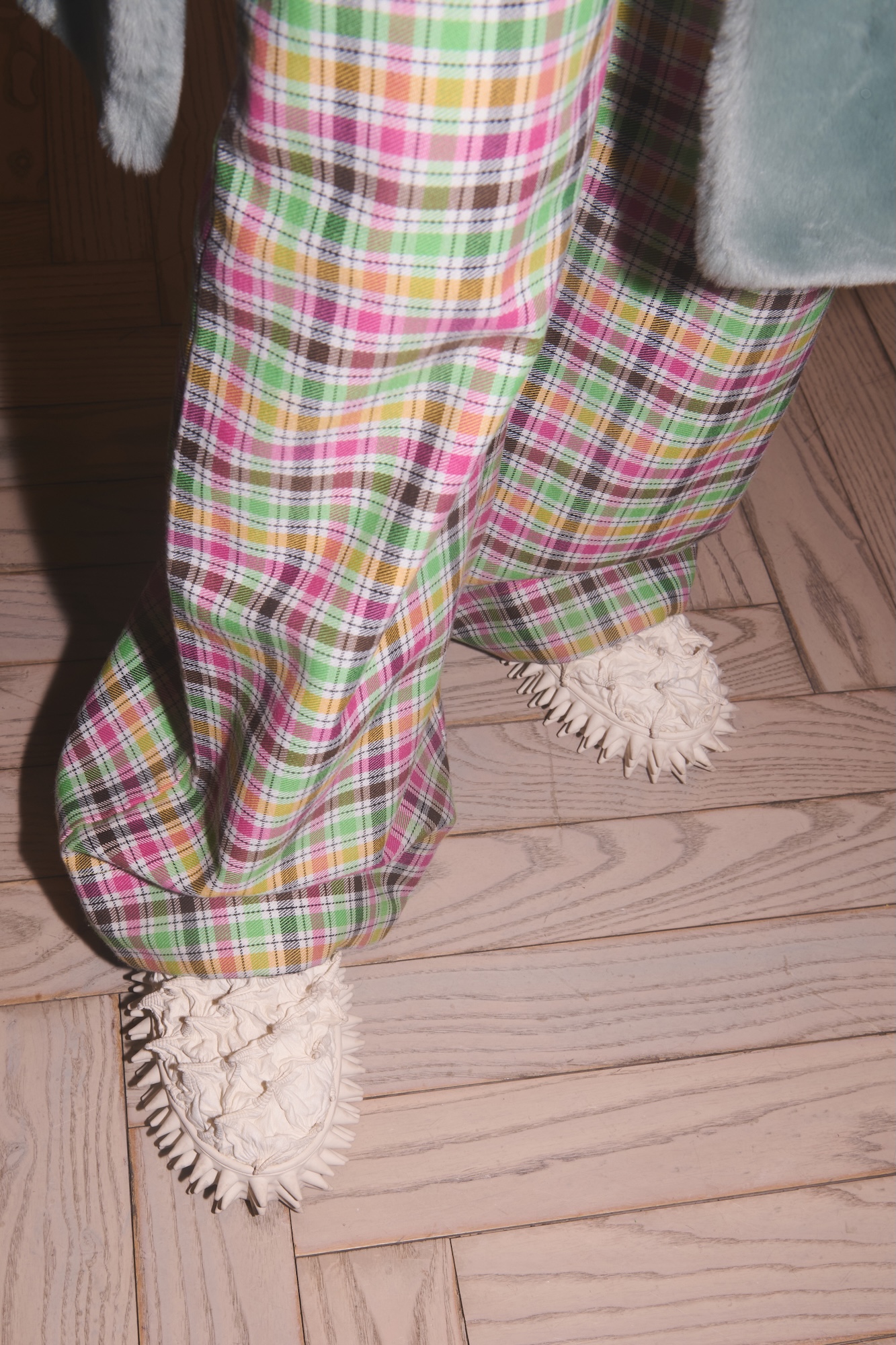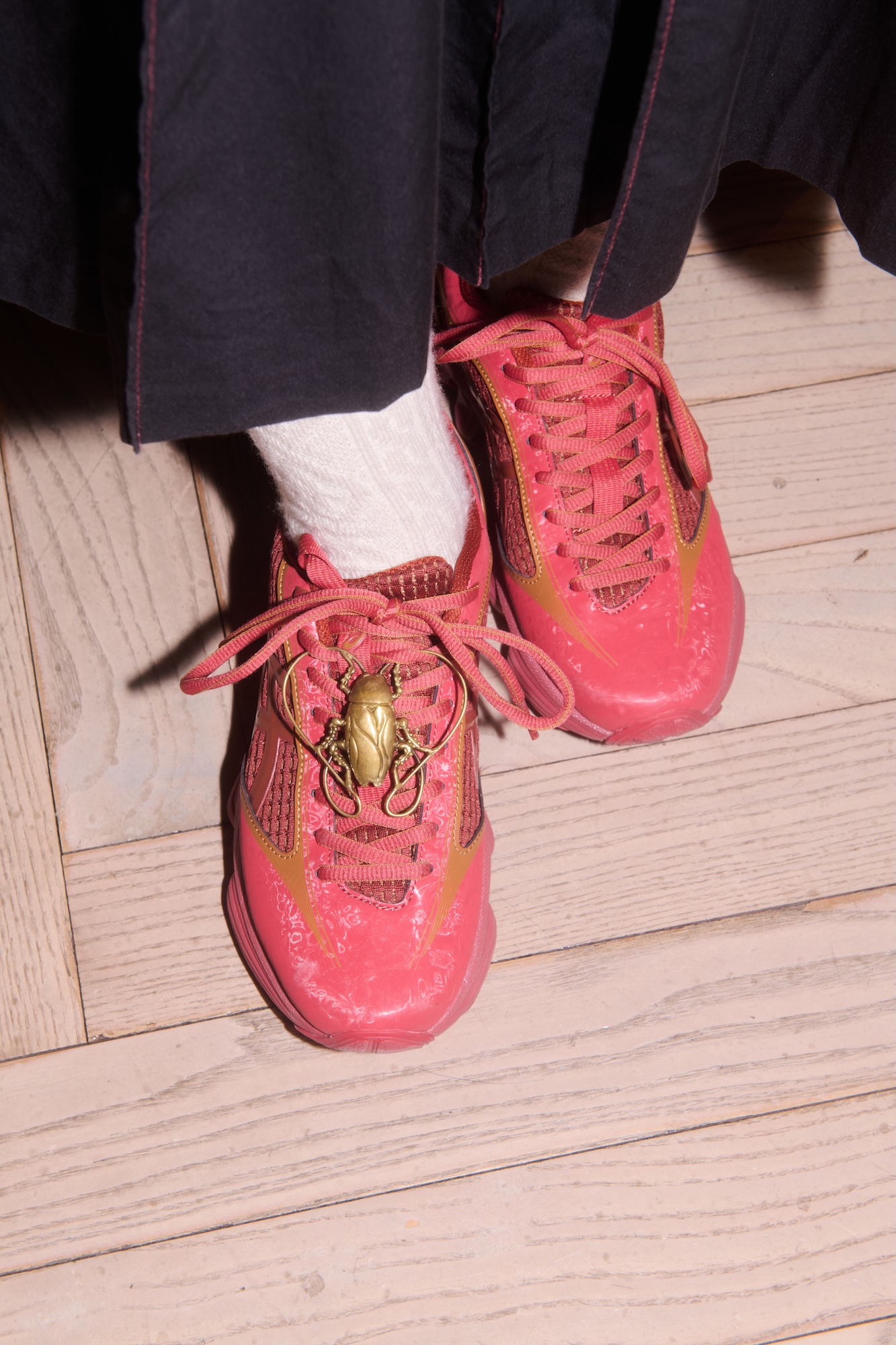 当日のドレスコードは“パーティースタイル”。会場には、スパンコールやファーといった装飾性の高いアイテムで、色鮮やかなスタイリングの来場者が目立つ一方、テーラードジャケットやレザーアイテムを軸にシックにまとめたスタイルも多く見られた。足元は「メゾン マルジェラ(MAISON MARGIELA)」のタビブーツやウエスタンブーツをはじめとしたポインテッドトゥのレザーシューズが主流だった。ほか、大胆なファーシューズを選ぶ来場者の姿もあった。シルエットや素材感で個性を表現しながらそれぞれがホリデームードを楽しんでいた。