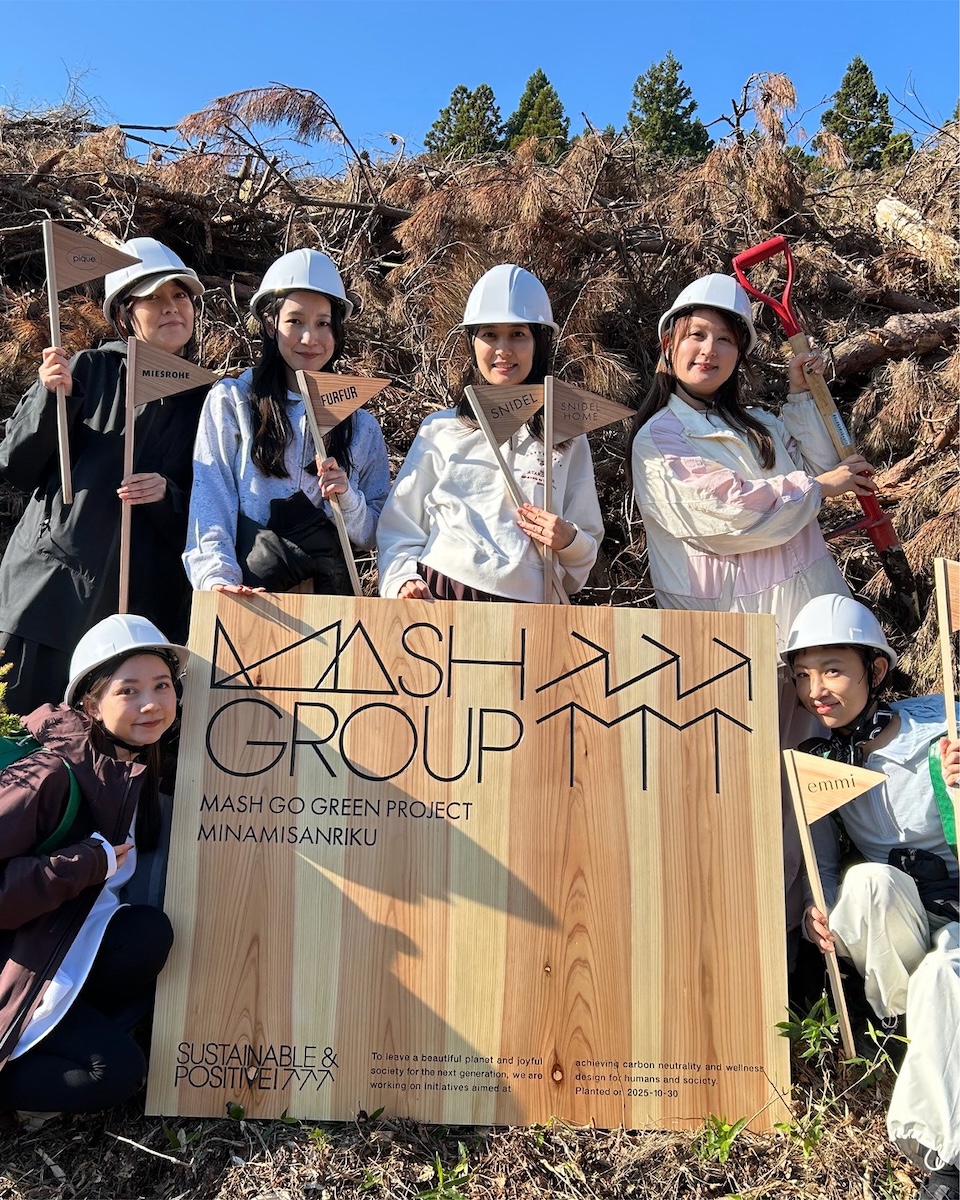 マッシュスタイルラボはこのほど、宮城県南三陸町のFSC認証林において植林プロジェクトを開始した。南三陸町で林業を営む佐久とのパートナーシップのもと、10月に初回の植林活動を実施し、スギの苗木3300本を植樹した。