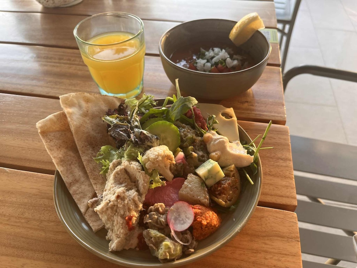秀逸なのはモーニングブッフェ。朝ごはんもついているプランを選んだが、これが大正解。豆のサラダやピタパンなどの中東料理ならではのフレッシュな料理が並び、なかでもレンズ豆やひよこ豆など具だくさんのスープは何度もおかわりをしたほど美味だった!