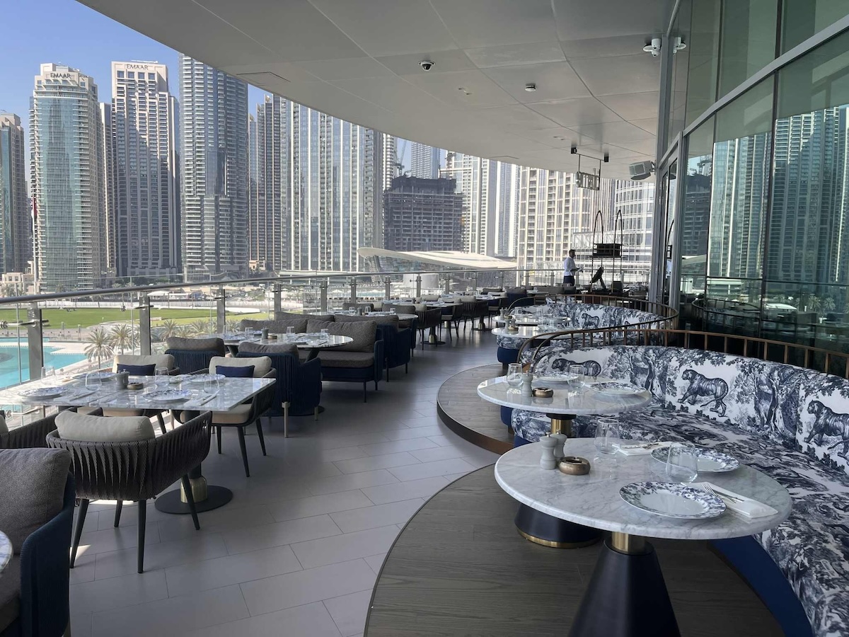 私はせっかくなので、ドバイらしい朝食を。ドバイモールの中にある高級メゾンが集まったファッション・アベニューには、高級ブランドに負けないほどラグジュアリーなカフェやレストランがあるのだ。しかも朝なら手の届く価格・・・と聞きつけ、散策してみることにした。まだブティックは開店前で、スタッフがミーティングしていたり、ディスプレーを整えていたり、清掃スタッフがフロアを磨いていたりで、営業中には見られない光景を眺められるのも興味深い。ファッション・アべニュー全体のオープンは朝10時だが、一部のカフェでは8時や9時から朝ごはん営業をしている。洗練された高級レストランでも、朝食ならば気軽に行ける。しかもすいていて眺望のいいテラス席も独り占めなのだ。私は少しスパイスの効いた中東の卵料理シャクシュカ(ディルハム=約2400円)をいただいた。これは贅沢な時間の使い方だった。