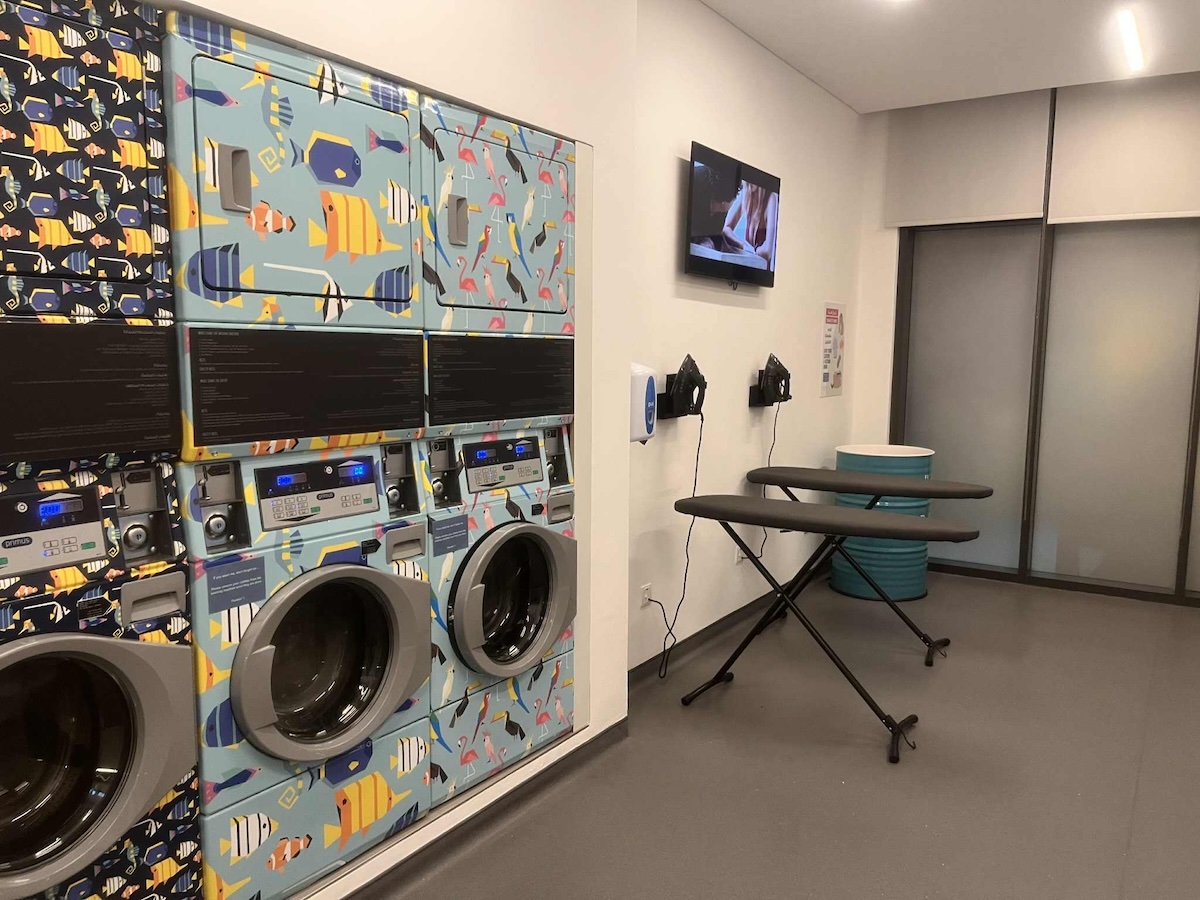 とにかくスタイリッシュでワクワクする空間。コンビニエンスストアが併設され、大きなトランクを預けられる(自分でいつでも出し入れできる)ラゲージルームがあり、自由に旅したい層にはありがたい。1カ月滞在の料金設定もあるなど、長期滞在もしやすく、ランドリーも記念写真を撮りたくなるほどスタイリッシュだ。
