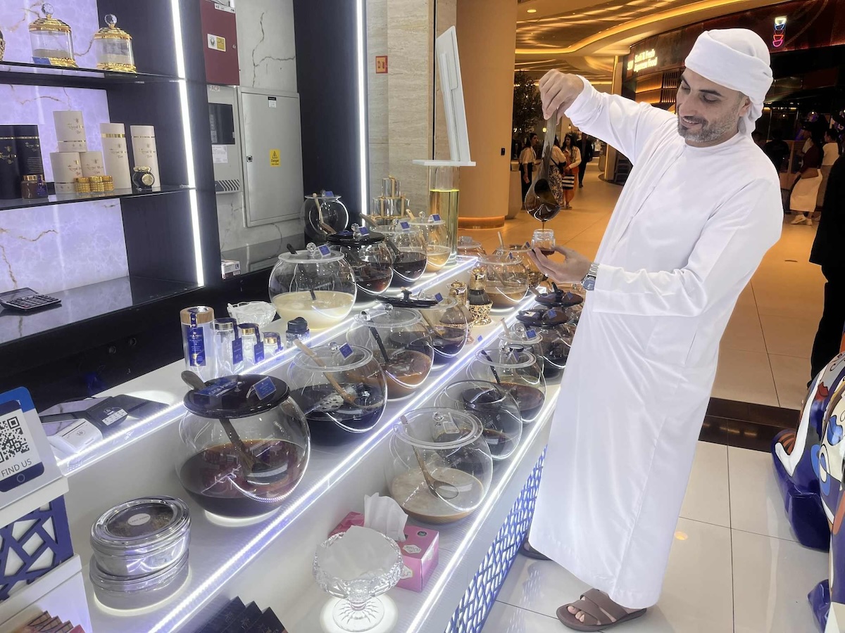 私が訪れたころはラマダンの時期だった。断食のイメージが強いが、家族でのきずなを再確認する時期であったり、困難な状況にみんなで耐えたりすることで、苦しむ貧しい層に思いを巡らせるような側面もあり、活発な経済活動はむしろ奨励されているのだとか。頑張った自分たちへのご褒美的なラマダンセールや、星や月の華やかなデコレーションもあり、街が輝いているのだ。各高級ブランドでも中東だけで展開するラマダンコレクションなるものが飾られ、こちらもあでやか。パリやニューヨークでも手に入らないレアなアイテムが並ぶのだ。