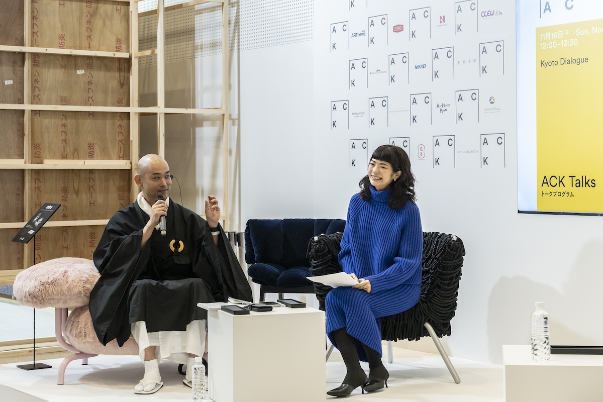 山下が「ACK」を通して一貫して向き合ってきたのが、日本、そして京都という土地が持つ文化的価値だ。廣誠院でのエキシビションに加え、トークプログラムにも注力した。建仁寺の境内に位置する両足院では、定期的なアートプログラムが展開されている。その文脈をふまえて、両足院の副住職である伊藤東凌と、現代美術家のオラファー・エリアソン(Olafur Eliasson)のトークプログラム「Kyoto Dialogue」をフェア会場で実施した。禅の思想と、現代アートにおける自然観を重ね合わせるテーマのもと対談が進行。「思想や哲学においても、京都にあるものを新しい視点とつなげていきたい。禅を知っている方にも、現代アートに触れてきた方にも新しい視座をもたらす内容になったと思います」。