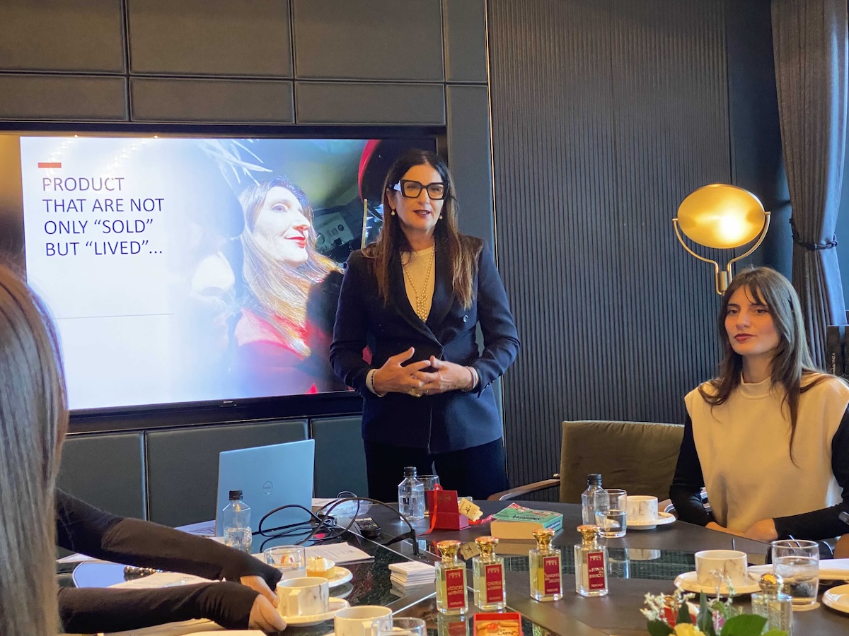 今後の戦略についてステファニアは、「独自性のあるユニークなモノ作りを継続する。品質が高くクリエイティブな香りを継続して提供できれば、消費者の信頼を得られるはずだ」と話す。「デュープフレグランスが多く出てきたから、今まで以上にオリジナリティーが必要。香りの独自性もだが、ボトルやロゴのデザインも工夫している」とマニュエラ。「ノービレ」では、ボトルにアルターレの手吹きガラス、パッケージやラベルにロルシカのダマスクシルクやトスカーナのレザーを使用し、カンポリーグレのフィリグリーと呼ばれる金細工を施すなど製品のすみずみにまでイタリアが誇る職人技が反映されている。それを可能にするのも、モノ作り全過程を自社で行うから。一族が培った歴史に基づくファミリーの情熱が反映された「ノービレ」は、モダンかつ“オーセンティック”なイタリアンフレグランスの旗手と言える存在だ。