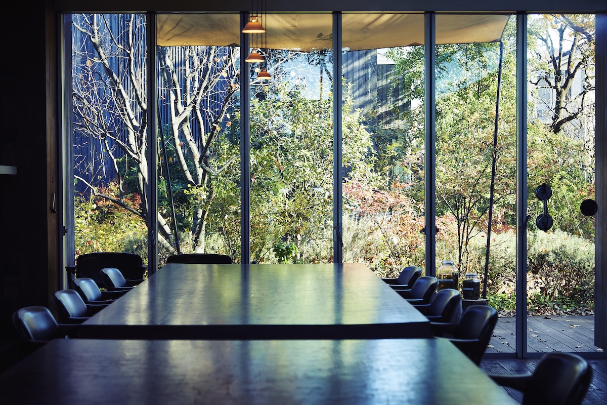 この空間は客席と厨房の距離が近く、仕切りもありません。料理をじっと眺める人、料理人との会話を楽しむ人、庭を散歩したり、本を読んで過ごす人など、それぞれが心地よい時間を自由に選んでいます。こちらの想いを押し付けない接客の距離感が自然に保てるのは、空間そのものにほどよい“ゆるさ“があるから。境界線をつくらない設計が、その雰囲気を支えているのだと思います。