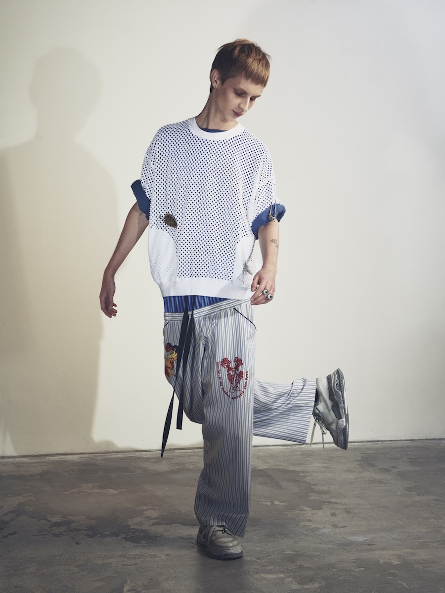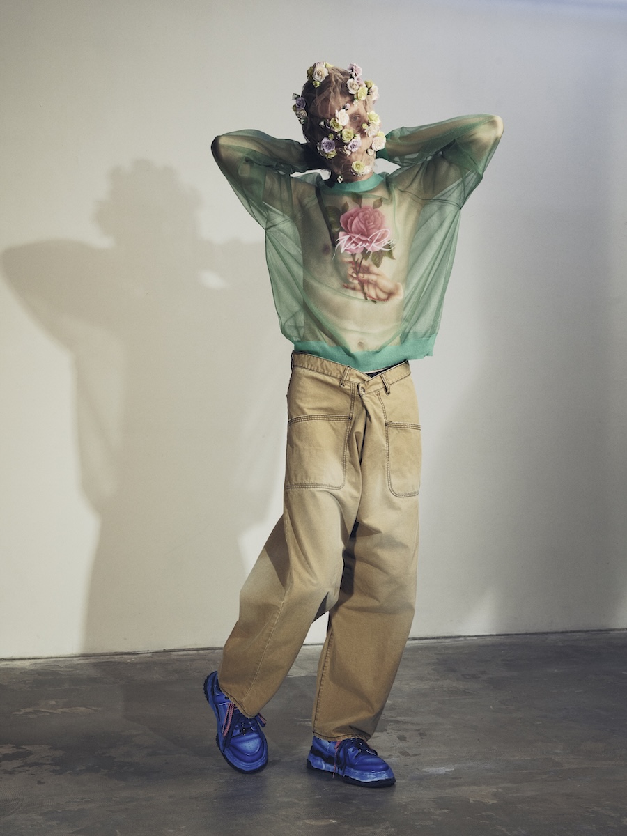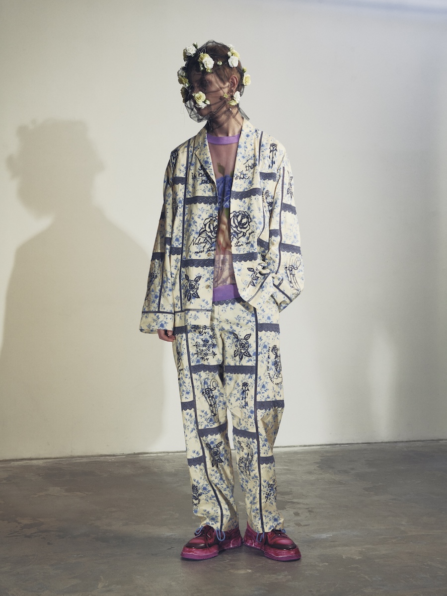 30年以上のキャリアを通じてジェンダーを越えたシルエット、繊細な刺繍技術、青い薔薇のアイコニックなモチーフで知られていた深民にとって、本ブランドは自身の集大成と言えるもの。エレガンスとパンクの融合の美学を表現している。
