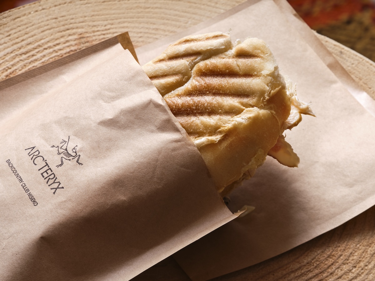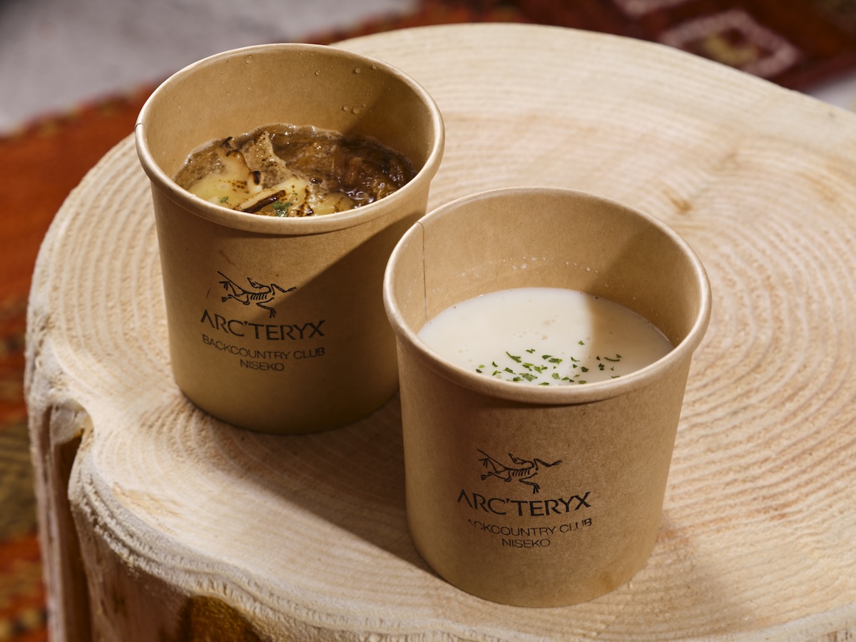 併設したキッチンカーでは、ホットサンドやクラムチャウダーをはじめ、地元ロースタリーのコーヒー豆を使ったコーヒー、地元ブリュワリーのクラフトビール、ホットワインなどを販売する。ニセコのシンボル羊蹄山をイメージした抹茶のかき氷も用意し、「アークテリクス」のロゴを刻印したオリジナルの枡で提供。冬山で過ごした一日の余韻を仲間と分かち合いながら、くつろぎの時間を過ごすことができる。