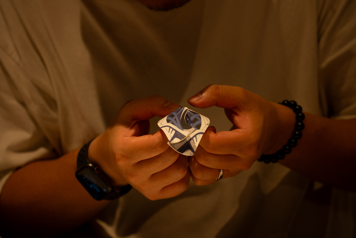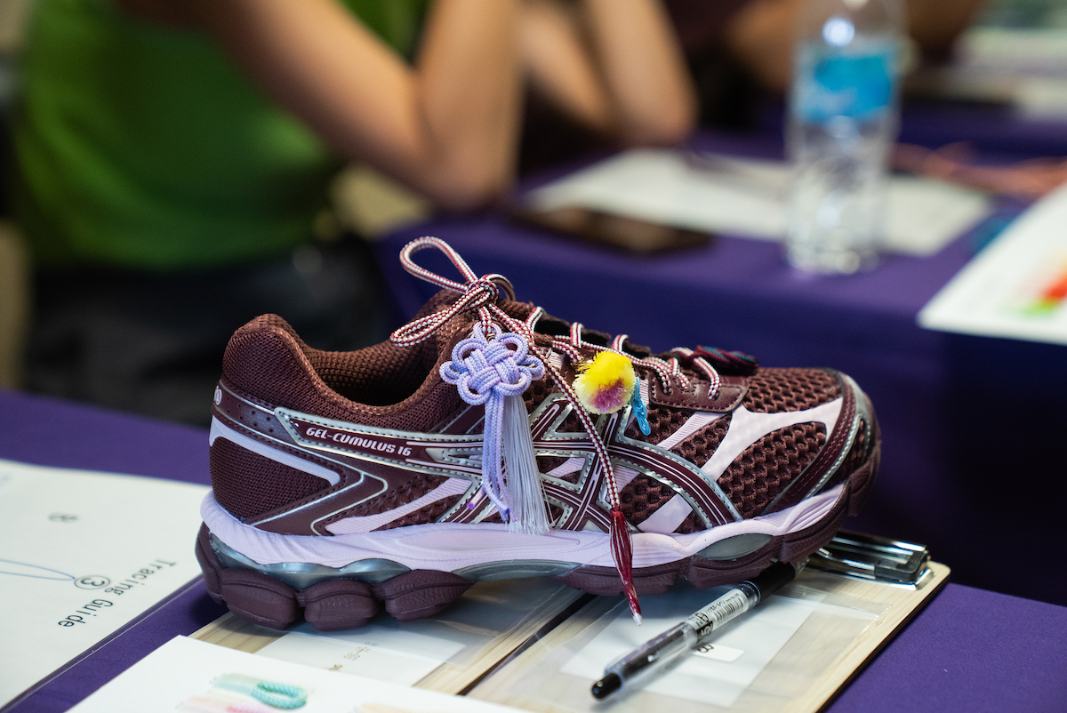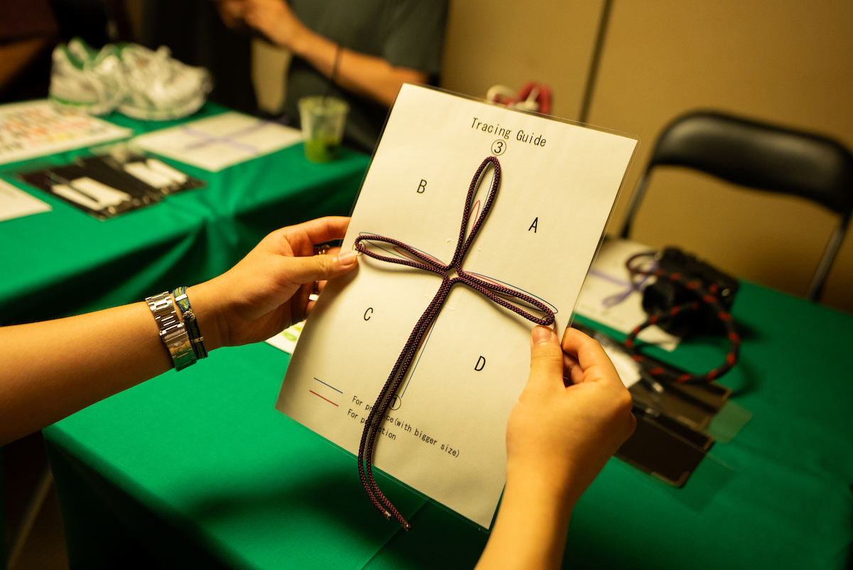 “機械組”と“手組”の違いを間近で体感した後、スニーカーに取り付け可能なブローチ型の“くみひも”を作るワークショップが開催。色や柄の異なる紐を2本選び、思い思いに組み上げていく工程には、参加者それぞれの個性が表れる。つくり手の視点に立つことで、先ほど目にした技術の奥行きへの解像度が自然と高まる内容となった。