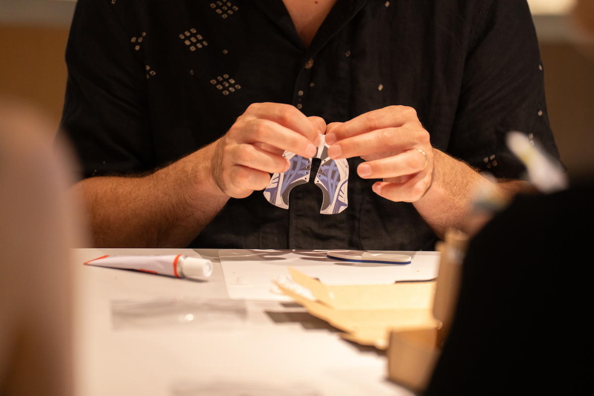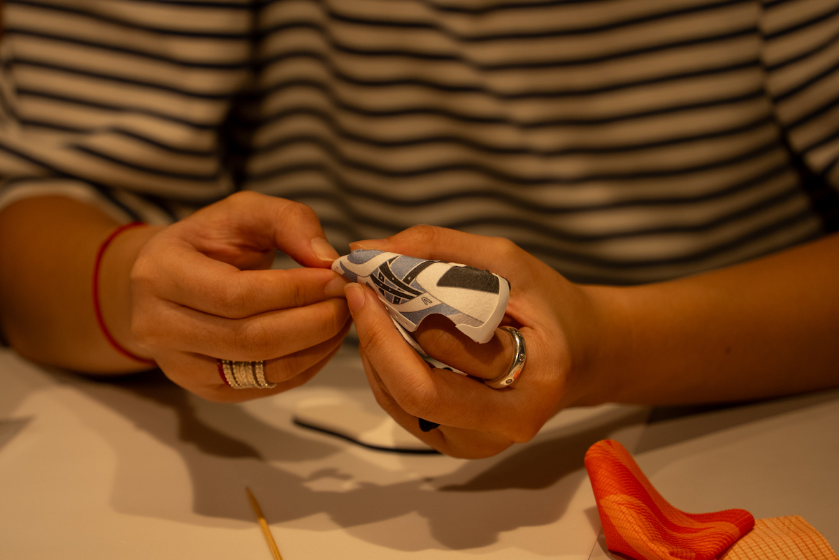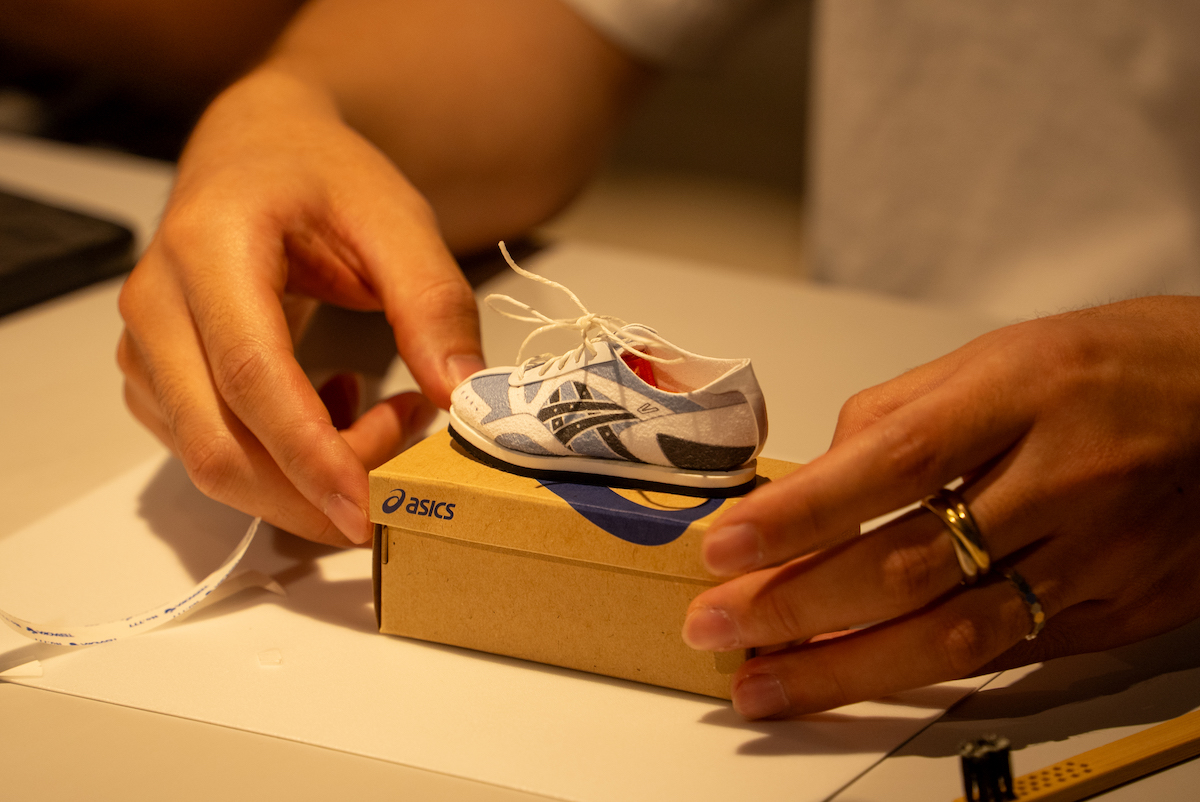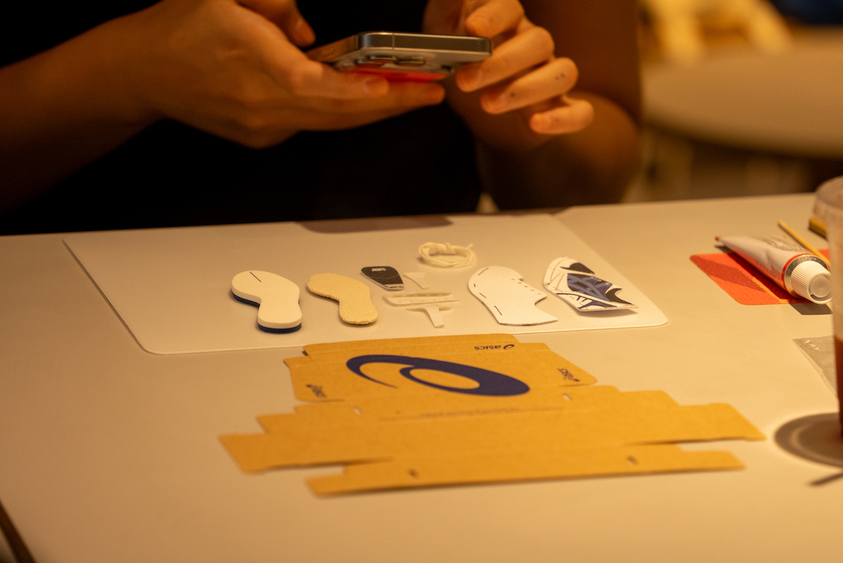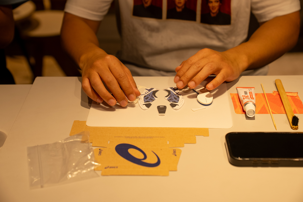 翌日、プレスプレビューは東京へ。原宿某所で行われたセッションの冒頭を飾ったのは、前日のプレゼンテーションにも登壇していた“ゲルカヤノ(GEL-KAYANO)”の生みの親・榧野俊一氏によるワークショップだ。内容は、ミニチュアサイズのスニーカーを制作するというもの。榧野氏がスニーカーの構造を解説しながら、参加者は実際の工程に沿う形でミニチュア版を組み立てることで、各パーツがどのような役割を担い、どの工程で組み上げられていくのかを体験的に学ぶことができる仕組みだ。前日にISSで見た研究や検証のプロセスと頭の中でつながり、数値や理論だけではなく、「なぜこの形でなければならないのか」を自分の手で確かめることで、「アシックス」が積み重ねてきた設計思想への理解がより立体的なものに。