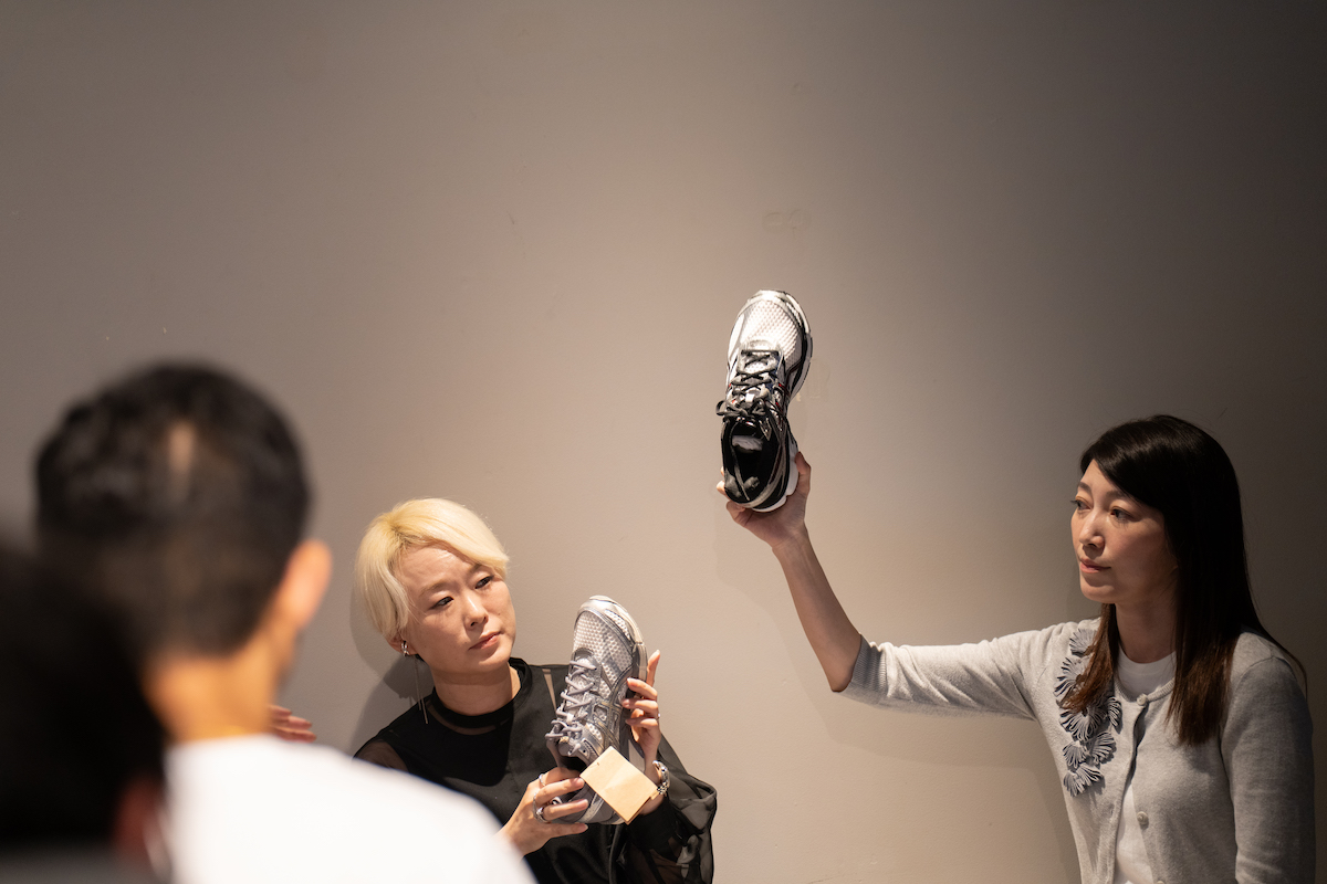 続いては、2014年に誕生したランニングシューズで、今年ライフスタイルシューズとして復刻を果たした“ゲル キュムラス 16 TG(GEL-CUMULUS 16 TG)”についてのトークセッションがスタート。登壇したのは、「アシックス スポーツスタイル(ASICS SPORTSTYLE)」で開発担当を務める山室典子と、デザイナーの浜名徳子だ。
